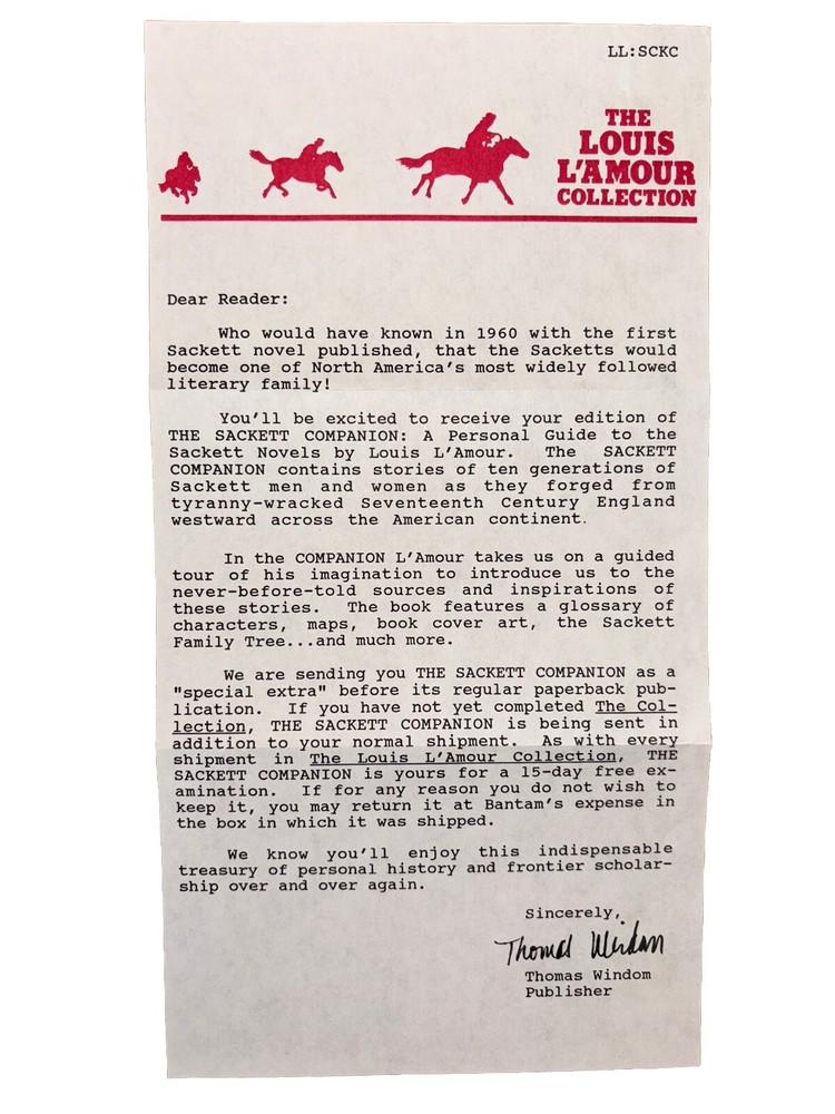 This hardcover edition of "The Sackett Companion" by Louis L'Amour is a must-have for fans of western novels. Published by Bantam Books, this book is a personal guide to the Sackett novels, making it an essential addition to any reader's library. The book is written in English and has an ISBN of 0553063162.The Sackett Companion is a comprehensive guide to the Sackett novels, providing readers with detailed information about the characters, plot, and theme of each book. This guide is perfect for those who are looking to discover the world of western novels and will prove to be a valuable resource for years to come.