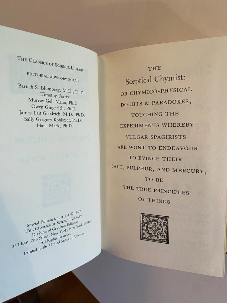 Dive into the world of alchemy with "The Sceptical Chymist" by Robert Boyle, a special edition leather-bound hardcover that invites readers to explore the historical intersection of chemistry and philosophy. Published by Princeton University Press in 1997, this scholarly work delves into the mind of one of science's earliest giants, offering an insightful look at the era's scientific methodologies and beliefs. With 268 pages of detailed content, this edition is tailored for the college audience, rich with Boyle's dialogues on transmutation and his beliefs on the philosophers' stone. The book measures 7 inches in height, 4.75 inches in length, and 2.25 inches in width, making it a substantial yet comfortable addition to any bibliophile's collection.