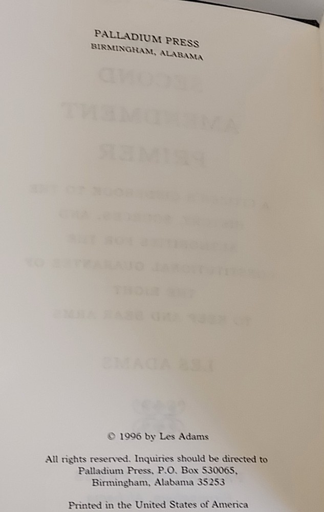Item up for sale: The Second Amendment Primer~Les Adams~1996~Palladium Press This vintage 1996 Second Amendment primer by Les Adams, a citizen's guidebook to the history, sources, and authorities for the constitutional guarantee of the right to keep and bear arms, was an estate sale find and is in quite good pre-owned condition. It feels as though it has never been cracked open. There are no markings in the book, and all pages and covers are complete an intact. All of the pages have gold colored edging. There is some scuffing on the faux leather front cover. The book measures approximately 6.25" x 4.25" x 0.75." The item pictured is the exact one you'll receive. Please see the pictures provided to aid the description. Customer service is our # 1 priority! We ship within 1 business day of receiving payment. We will gladly combine shipping costs on multiple purchases if that provides a savings to our customer. If you have any questions or concerns, please contact us through eBay. Thanks for viewing our item! Please see our feedback rating and bid with confidence! We list new items daily, so please add us to your list of favorite sellers and visit our store often. Your patronage is greatly appreciated! eBay will be charging sales tax to residents of specific states as required by law. *** Note to International Buyers *** We offer International Shipping through eBay's International Shipping Program. Import fees, duties and other charges related to the buyer's home country are not included in the seller's shipping quote and are the responsibility of the buyer.