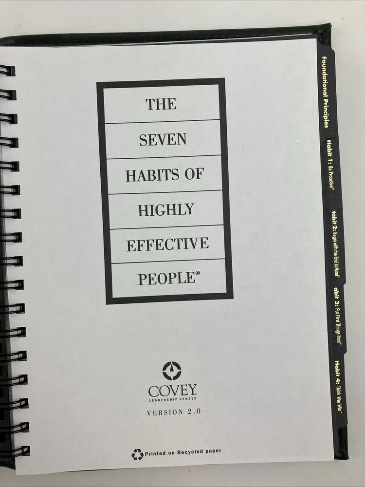 The Seven Habits of Highly Effective People - Binder Workbook w inserts Leather GOOD CONDITION -- CLEAN COPY/NO MARKINGS ON THE INSIDE (see pics) *Item will be protected well for shipping and comes with a tracking number for confirmation.* I ship out items every day so expect a quick delivery!