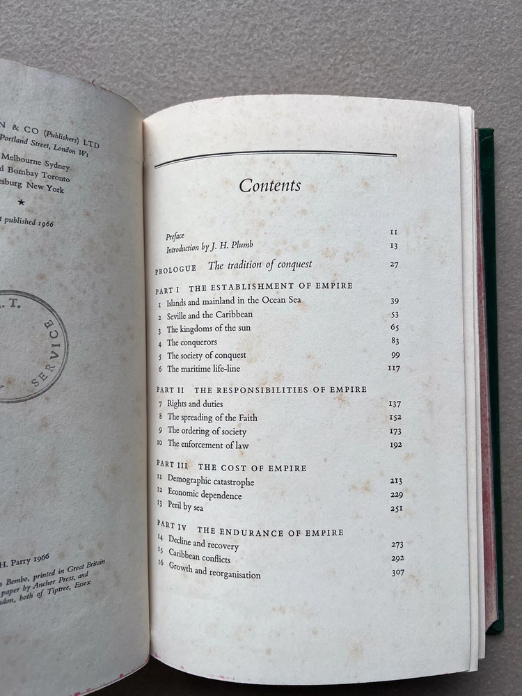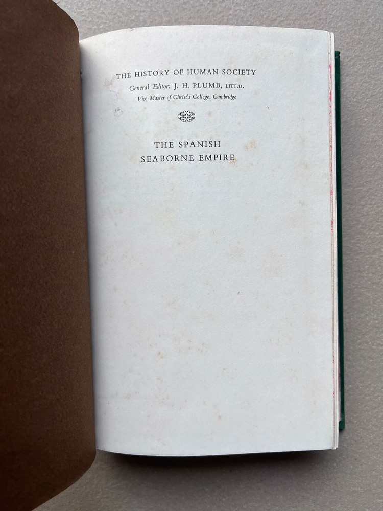 Spanish Seaborne Empire, Hardback expertly bound in half leather by Parry, J. H. Free shipping in Australia. Condition is "Good". Ex library copy with stamps, and some foxing. Sent with Australia Post Standard. Why buy a modern paperback version, when you can get this hand bound beautiful half leather hardback one of a kind? The Spanish empire in America was the first of the great seaborne empires of western Europe; it was for long the richest and the most formidable, the focus of envy, fear, and hatred. Its haphazard beginning dates from 1492; it was to last more than three hundred years before breaking up in the early nineteenth century in civil wars between rival generals and "liberators." This is J. H. Parry's classic assessment of the impact of Spain on the Americas. Parry presents a broad picture of the conquests of Cortès and Pizarro and of the economic and social consequences in Spain of the effort to maintain control of vast holdings. He probes the complex administration of the empire, its economy, social structure, the influence of the Church, the destruction of the Indian cultures and the effect of their decline on Spanish policy. As we approach the quincentenary of Columbus's arrival in the Americas, Parry provides the historical basis for a new consideration of the former Spanish colonies of Latin America and the transformation of pre-Columbian cultures to colonial states. My stepmother trained in traditional bookbinding practices at the British Museum in London, and her life’s work has been finding interesting books and rebinding them, with remarkable results, as the photos of this wonderful volume attests. Her bookbinding skills are very evident in this richly bound book, which would take pride of place on any library shelf.