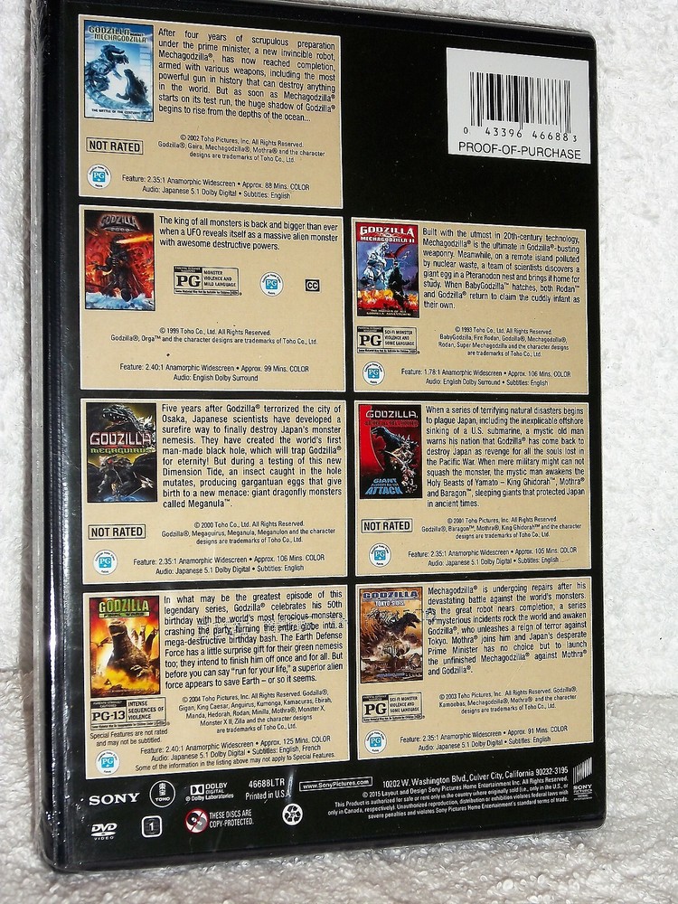 PLEASE READ BELOW BEFORE BIDDING AND ASKING ANY QUESTIONS ITEM DESCRIPTION This 4-Disc DVD is BRAND NEW!! FACTORY SEALED!! NEVER OPENED!! It includes all the original cases, covers, inserts and, of course, the disc(s) itself. Godzilla Mega Set - Set [2015] with Murata, Takehiro (actor), Abe, Hiroshi (actor), Nishida, Naomi (performer) AC-3, Box set, Dolby, Dubbed, Subtitled, Widescreen, NTSC OUR TERMS AND GUARANTEES We will contact the auction winner(s) via email within 24 hours of auction close with any specific instructions that may be necessary to complete the transaction. We will also notify the auction winner(s) when their order has been shipped by sending an email to their ebay email address. WE DO NOT SELL illegal bootleg tapes, copies, screeners, or any type of illegally burned CDs/DVDs! ALL ITEMS ARE FACTORY ORIGINALS and, unless otherwise noted, include their ORIGINAL US factory made cases, inserts/game book and, of course, the items themselves. All DVDs are GUARANTEED. If you receive a damaged, defective or otherwise unusable item from us, please inform us within 15 days of shipment and we will replace the defective product. In the event that the defective item is no longer available, we will substitute for another item, credit your account or issue a refund minus the Shipping. Buyer must make contact within 3 days of the end of auction and payment must be made within 10 days of the end of auction. Please have funds ready to send when you are bidding. Your personal information will never be shared or sold to anyone. Your transaction is strictly confidential, and you will receive your product in discreet packaging . Finally, there should NEVER be a reason to leave us negative feedback. That is NOT the proper way to get our help with a problem, just contact us and give us a chance to provide an appropriate solution. Permanently hurting our reputation by leaving us negative feedback or threatening negative feedback will NOT get you the service you are looking for, again, just email us if you have a problem with your purchase. PAYMENT TERMS Payment is expected within 10 days after the auction closes. Please include the following with your payment: Username Auction number(s) Item name Shipping Address We accept the following forms of payment: . PAYPAL Credit Cards (Contact us for details) SHIPPING TERMS Your DVD(s) will be shipped within 48 hours of receipt of payment. All DVDs will be shipped discreetly . The flat rate shipping fee using USPS FIRST CLASS MAIL is $ 3.00 for the 1st DVD, $2.00 for each additional within the USA . International orders, INCLUDING CANADA, using USPS AIRMAIL are $10.00 for the first DVD, $5 for each additional. Rush and Expedited shipping options are available to most areas; please feel free to contact us for pricing and other details regarding the auction. I COMBINE SHIPPING Please View Our Other Auctions And Save On Shipping