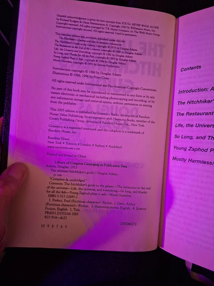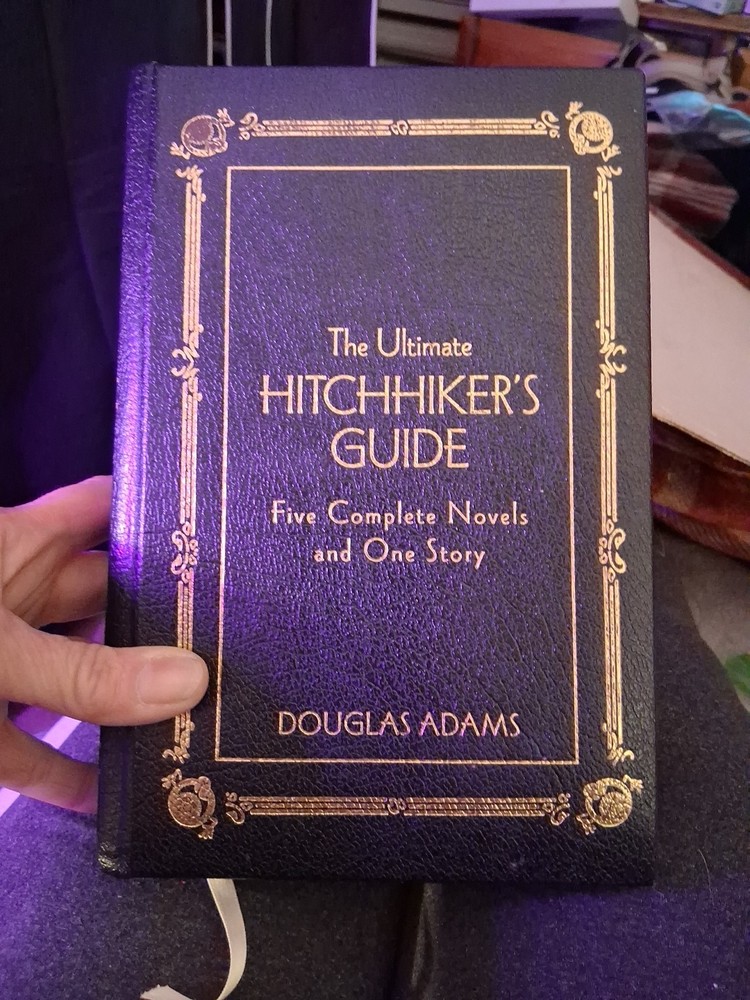This comprehensive edition of Douglas Adams' iconic series, "The Ultimate Hitchhiker's Guide: Five Complete Novels and One Story," is a must-have for any science fiction or humorous literature enthusiast. The hardcover format, published by Random House Value Publishing in 2005, features 832 pages of captivating storytelling and is beautifully leather-bound for added elegance. The book's dimensions are 9.5 inches in length, 6.4 inches in width, and 1.9 inches in height, with a weight of 34.9 ounces. The intended audience for this literary classic is young adults and adults. The book is also a great addition to any vintage book collection. Get ready to embark on a intergalactic journey with this hilarious and thought-provoking series.