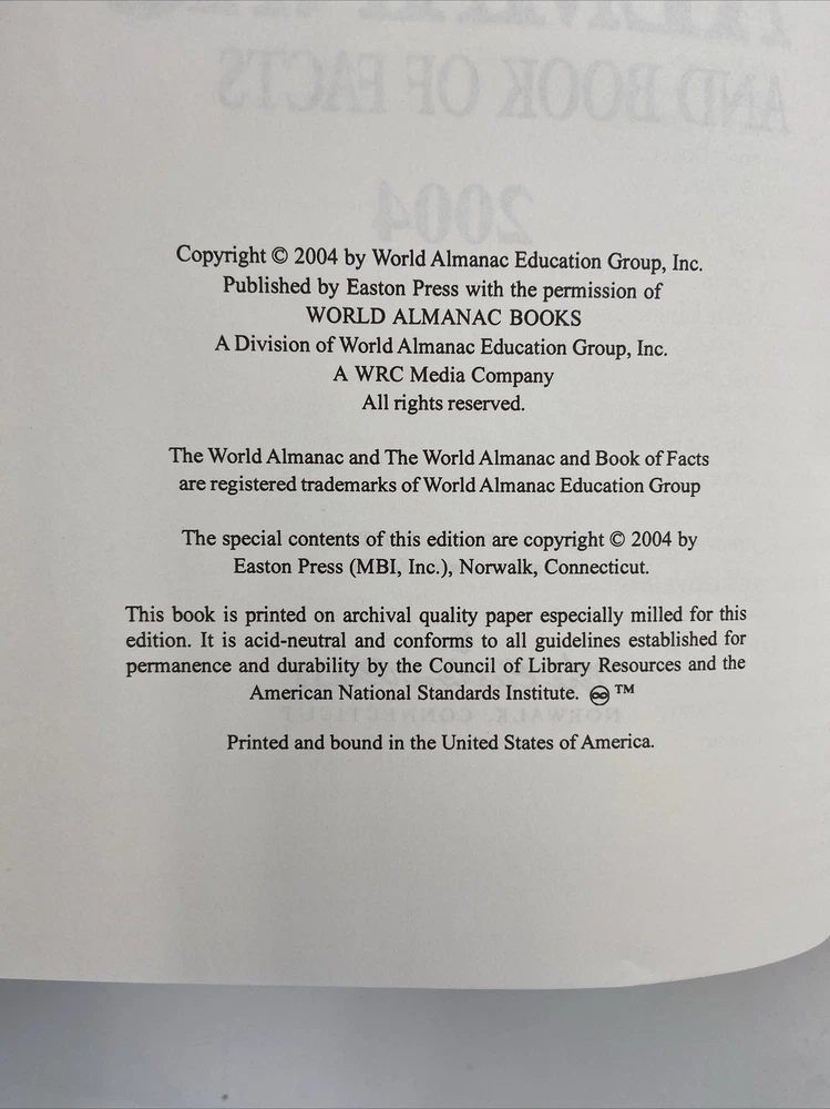 2004 World Almanac Easton Press Leather Bound Reference Book