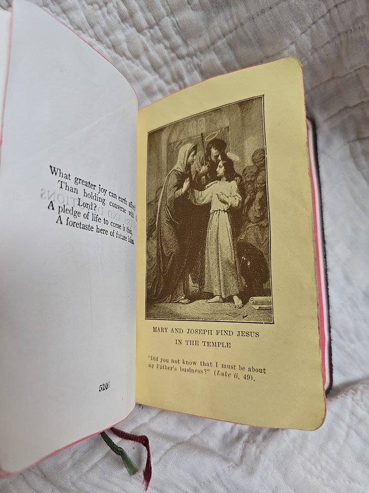 The product is "The Young Man's Guide" by Rev F R Lasance, published by Benzinger Brothers in 1910. It is a leather-bound prayerbook in English, focusing on religion and spirituality. See pictures, little rip on front page