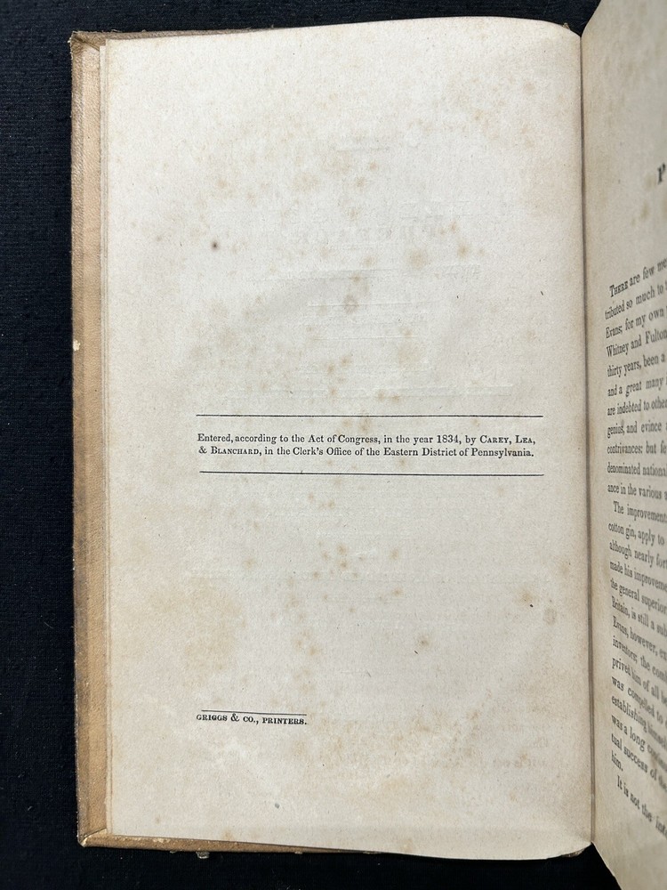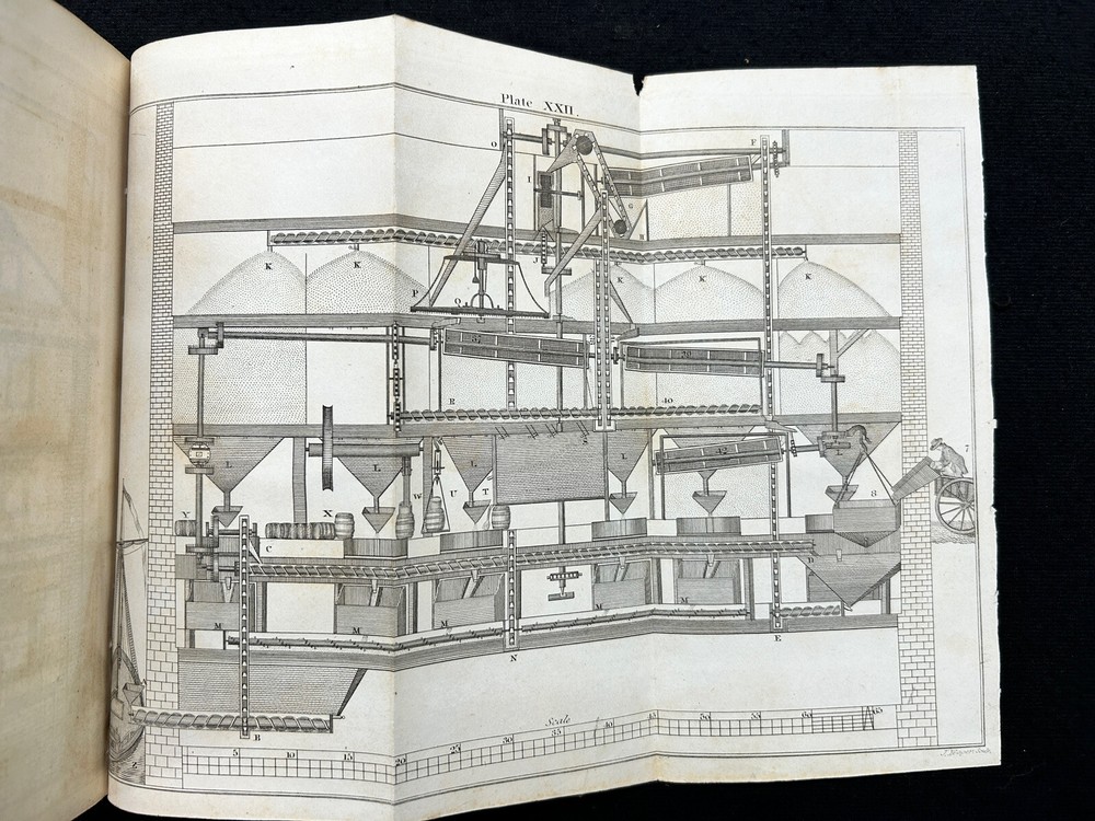 Welcome to Dark Star Books, home of Spooky The Young Mill-Wright and Miller's Guide Illustrated by Twenty Eight Descriptive Plates by Oliver Evans The Tenth Edition with Additions and Corrections by Thomas P. Jones Philadelphia: Lea & Blanchard 1840 viii, 392 pages Tenth Edition as stated Hardcover, 9 by 5.5 inches, bound in speckled leather with black & gilt to spine. Includes Principles of Mechanics and Hydraulics, Different Kinds of Mills, Manufacturing of Grain into Flour, etc. Plates in rear, some are fold-outs! Condition: Good condition. Scar to bottom front, chipping along spine at back, some scuffing to boards. Tanned text with some foxing, a few faint pencil notations. Binding solid. See photos. Shipping: We ship our orders through the US Postal Service (USPS). We are happy to combine shipping on multiple orders; If you want to buy more than one item, PLEASE put them in your cart and have us send you an invoice so we can combine the shipping. International orders. We are in the Global Shipping program but can sometimes opt out for a particular item if you contact us BEFORE BUYING the item. Global shipping is usually the least expensive option. Thank you! We welcome you to check out our eBay store as well as our lovely brick-and-mortar building in Yellow Springs, Ohio! We carry over 40,000 used books, back-issue comics, games, puzzles, and literary and geeky gifts. And no visit to Dark Star is complete without petting our store cat, Spooky! Dark Star Books & Comics 237 Xenia Ave. Yellow Springs, OH 45387 Y4081 Case listed by Yvonne