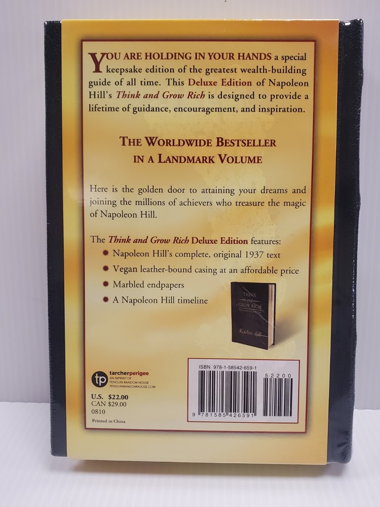 | Features | Complete Original 1937 Text, Vegan leather-bound casing at an affordable price, Marbled endpapers, A Napolean Hill timeline, Sealed in OEM Shrinkwrap |