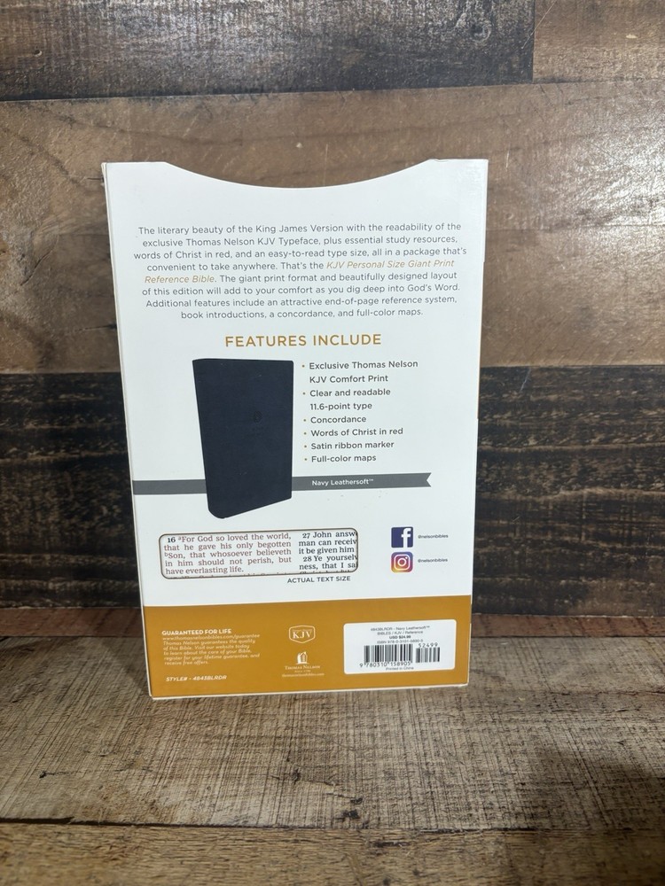 The Thomas Nelson Personal Size Giant Print Holy Bible in KJV Red Letter Blue Leather is a beautifully crafted Bible designed for personal use. Published in 2017, this Bible features a bonded leather cover, making it durable and long-lasting. With a giant print size and red letter text, this Bible is easy to read and navigate. It includes a concordance, illustrations, and 1344 pages of content, making it a comprehensive and informative resource for those looking to deepen their understanding of the Bible.