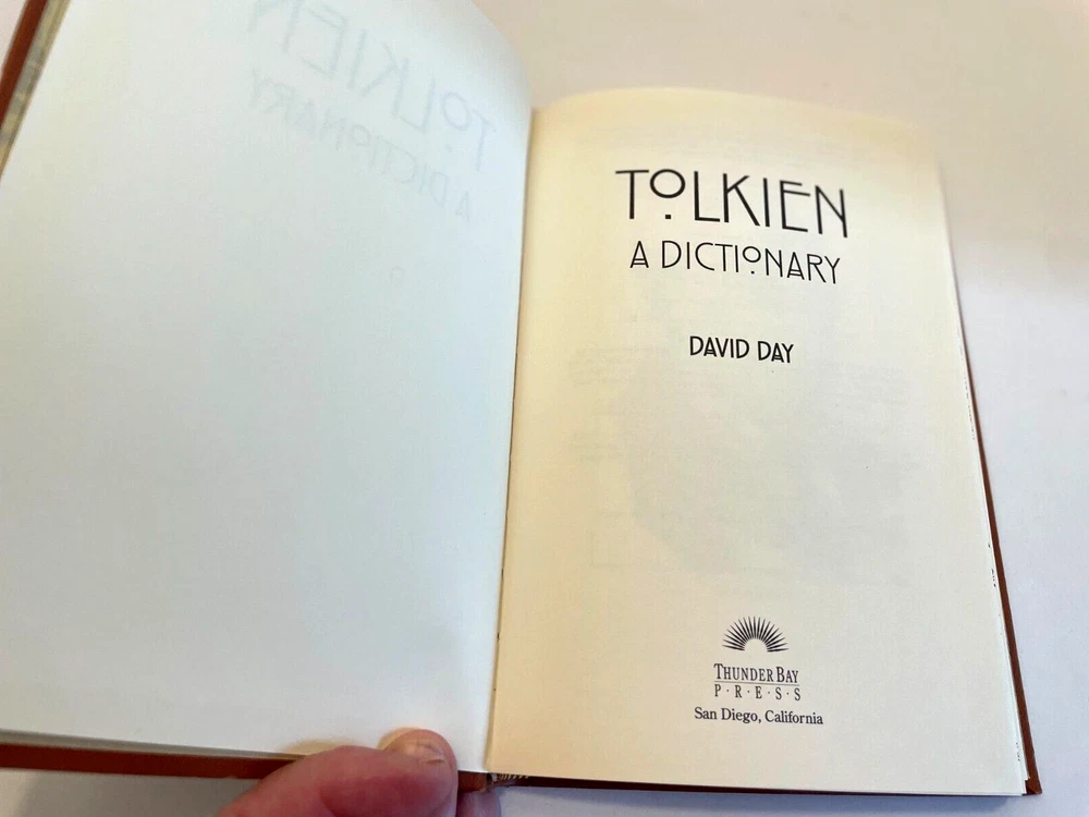 Tolkien A Dictionary by David Day Thunder Bay Press 2013 approx. 7" x 5" GREAT GIFT for the Hobbit lover Appears to be unread, the spine is not broken in, no marks, only sign of wear is a slight scuffing on front - adds character - see photo