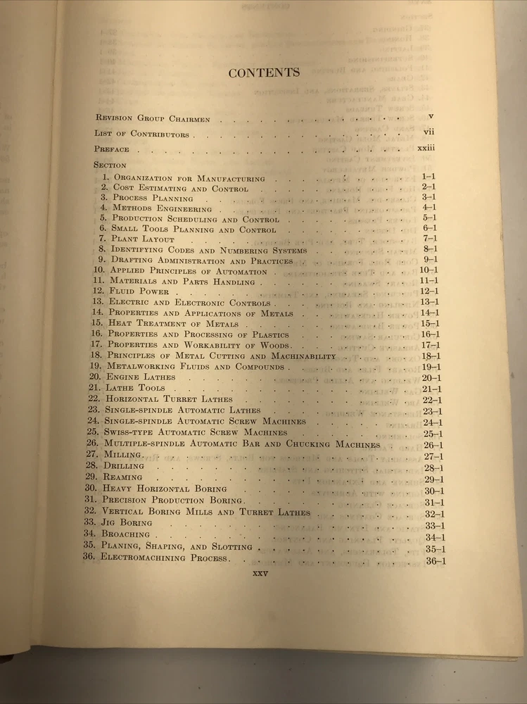 This vintage 1959 Tool Engineers Handbook is a treasure trove of manufacturing knowledge! Packed with practical insights on planning, design, tooling, and operations, it's a must-have for engineers and collectors alike. The book is in good condition with just minor signs of use - a previous owner's name and slight edge staining that add character. The wealth of information from expert contributors makes this 2nd edition McGraw Hill reference truly special. You can almost smell the machine shop oil and coffee when flipping through these well-loved pages!
