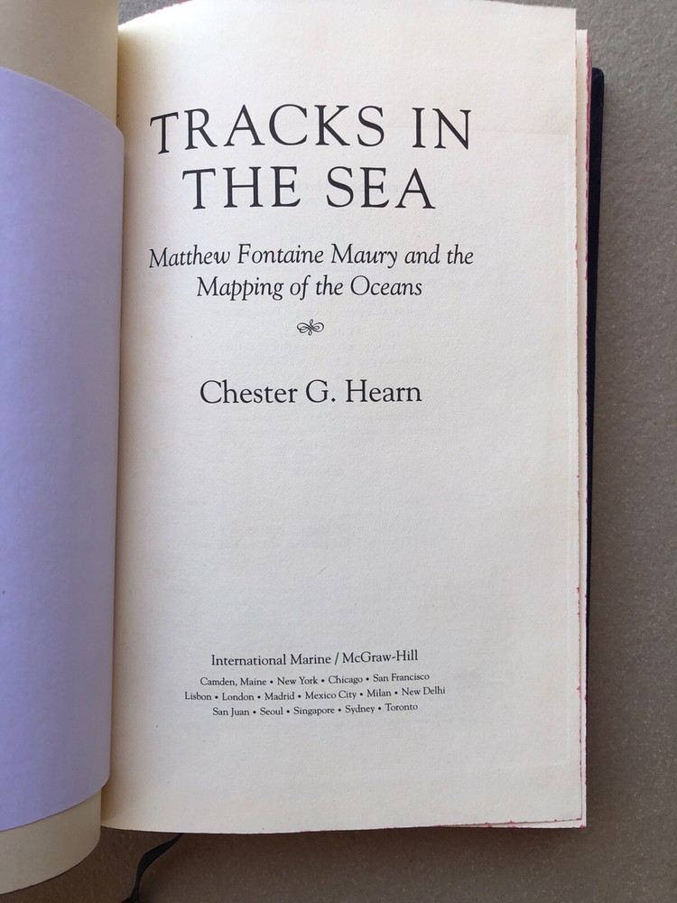 Tracks in the Sea: Matthew Fontaine Maury and the Mapping of the Oceans.. Condition is "Very good". Beautifully rebound in half leather by professional bookbinder, this handsome volume would make a superb present! Sent with Australia Post Standard. The Remarkable Story of a Seafaring Scientist "Tracks in the Sea" captures a rich yet little-known chapter in the history of seafaring--the mapping of the oceans by Matthew Fontaine Maury, the father of modern navigation and ocean science. Voyages in the 1800s were risky endeavors. Navigation was uncertain and knowledge of prevailing winds and current had advanced little since Columbus. Hundreds of ships were lost each year; the cost in property and lives was enormous. Maury changed all that. In a brilliant eighteen-year effort between 1842 and 1861--driving himself and his staff with relentless curiosity, ambition, adventurousness, and altruism--he transformed the oceans from trackless hazards into a network of highways marked by dependable winds and currents and showed shipmasters how to shave weeks and even months from voyages. His career coincided with the ascendance of America as a maritime power and with the culmination of the Great Age of Sail. In a world interconnected by maritime commerce, Maury's work was critically important not just to America but to all nations. Now "Tracks in the Sea" resurrects the life and work of this unique and fascinating man. In tracing Maury's intellectual odyssey and the dramatic conflicts of his career, Chester Hearn shows us a pivotal era in seafaring and in the history of a raw young nation. My stepmother trained in traditional bookbinding practices at the British Museum in London, and her life’s work has been finding interesting books and rebinding them, with remarkable results, as the photos of this wonderful volume attests. Her bookbinding skills are very evident in this richly bound book, which would take pride of place on any library shelf.