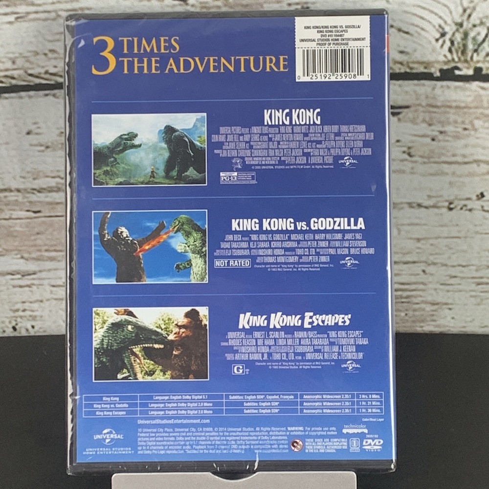 Universal King Kong, King Kong vs Godzilla, King Kong Escapes Movie DVD. KING KONG/KING KONG VS GODZILLA/ KING KONG ESCAPES - TRIPLE FEATURE Product details Is Discontinued By Manufacturer : No MPAA rating : PG-13 (Parents Strongly Cautioned) Package Dimensions : 7.4 x 5.3 x 0.6 inches; 0.8 Ounces Media Format : Full Screen Run time : 5 hours and 50 minutes Subtitles: : English Studio : Universal All Movies are authentic releases and may have some wear on outer plastic case due to genuine age of product. No stock photos. The actual item is the one shown. Only items in pictures included. Promotional items and inserts are left in place I make no guarantees digital codes, promotions, or coupons will work. They are included as they were part of the original purchase. These movies are all from my personal collection accumulated over decades. Stored in a smoke and pet free home. I am not a professional grader. I do my best to follow eBay's guidelines. Items are packaged well with reused/recycled packaging in a mailer designed for CDs/DVDs. CDs/DVDs are shipped USPS Media Mail from the Baltimore, MD area next business day. Happy to combine shipping, just let me know.