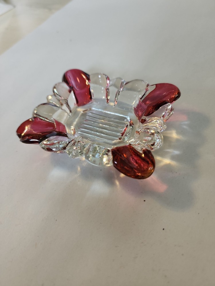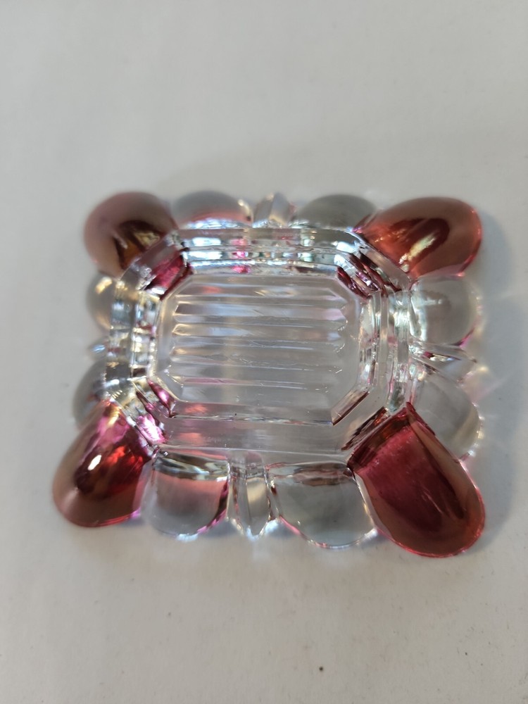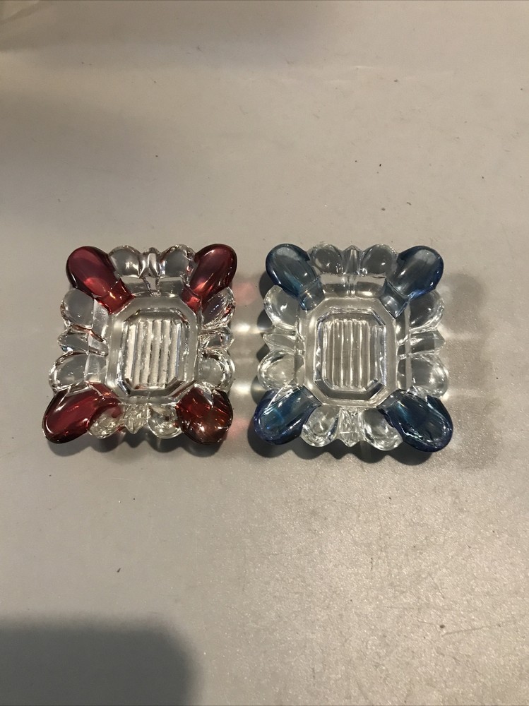 Two Westmoreland Color Flashed Small Ashtray 3¼" x 2 ¾" x ¾". One with ruby red and one with sapphire blue....