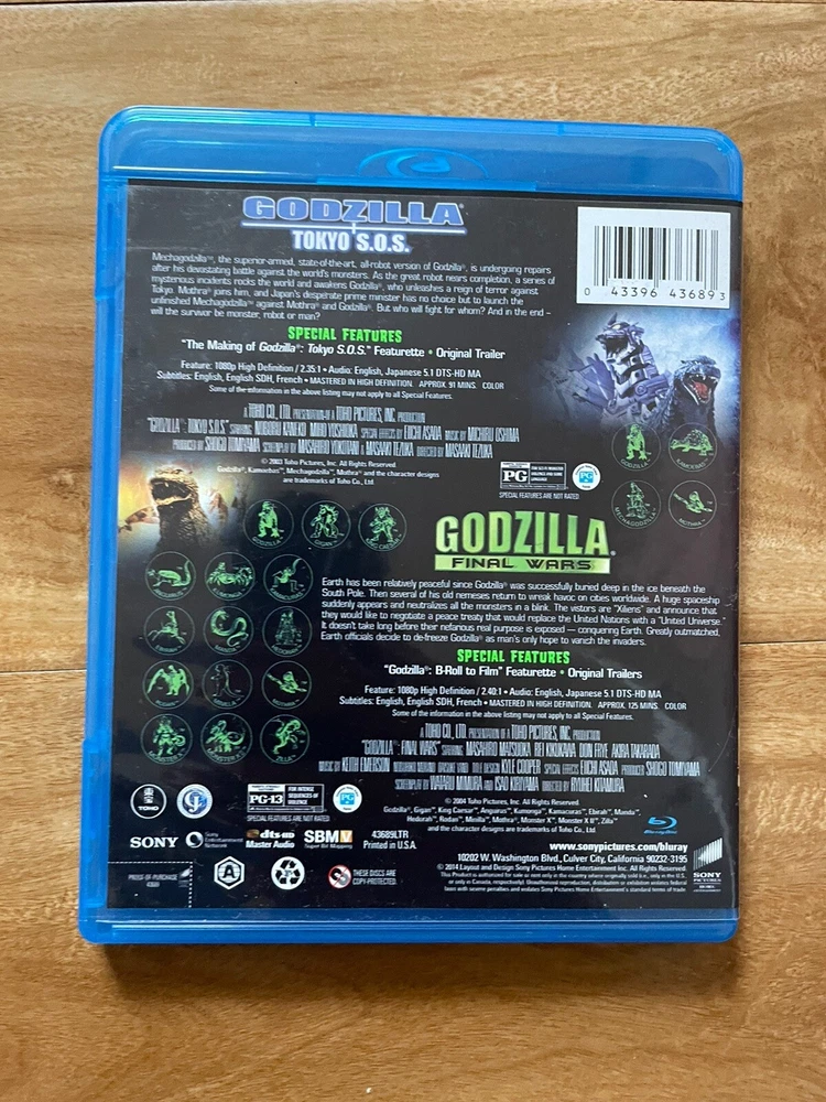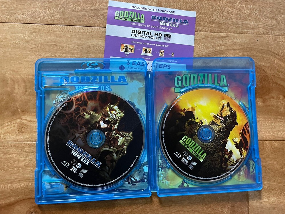 USED GODZILLA TOKYO S.O.S. + GODZILLA FINAL WARS BLU-RAY Pre owned condition Comes with digital Discs are in good condition Please view the pictures to judge condition Please view my other listings for more movies. I have lots of boutique titles I combine shipping