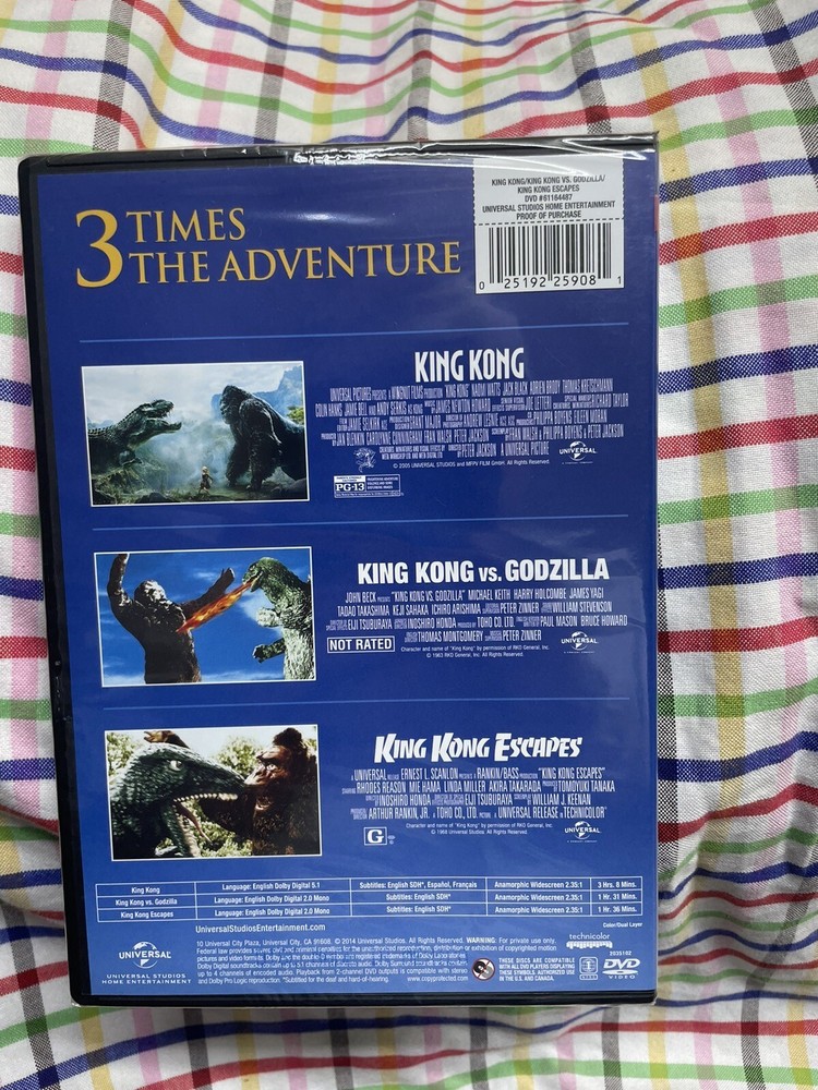 Immerse yourself in a world of adventure and fantasy with the Universal King Kong Movie DVD Box Set. Featuring three epic films, including King Kong vs Godzilla, King Kong Escapes, and the 2014 adaptation of King Kong, this collection is a must-have for any movie lover. Join the talented cast of actors, including Andy Serkis, Jack Black, and Adrien Brody, as they bring to life the thrilling battles between giant creatures and supernatural mysteries. Experience the cinematic movement of B-Movie and Cult genres from the brilliant mind of director Peter Jackson. Captivated by the stunning visual effects and captivating storylines, you'll lose yourself in this collection of action, sci-fi, fantasy, horror, drama, and thriller genres. With features like former rental, captioned, and widescreen, the Universal King Kong Movie DVD Box Set is perfect for any movie marathon.
