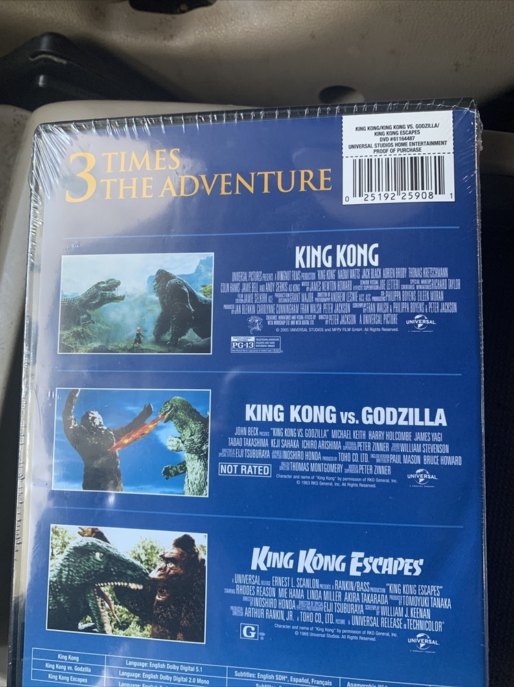 Immerse yourself in the ultimate cinematic experience with Universal's King Kong trilogy. Unleash the epic battle between two giant monsters in King Kong vs Godzilla, witness the thrilling escape of King Kong in King Kong Escapes, and relive the classic story of the mighty ape in the 2014 adaptation of King Kong. Directed by Peter Jackson and starring Andy Serkis, Jack Black, and Adrien Brody, this DVD set is a must-have for fans of action, sci-fi, fantasy, adventure, horror, drama, thriller, and mystery genres. Featuring a tall/DVD case and rated PG-13, this box set includes all three movies with English, French, and Spanish subtitles. The edition is captioned, widescreen, and includes bonus features. Perfect for collectors and movie enthusiasts, this DVD set is region code 1 (US, Canada...) and released in 2014.