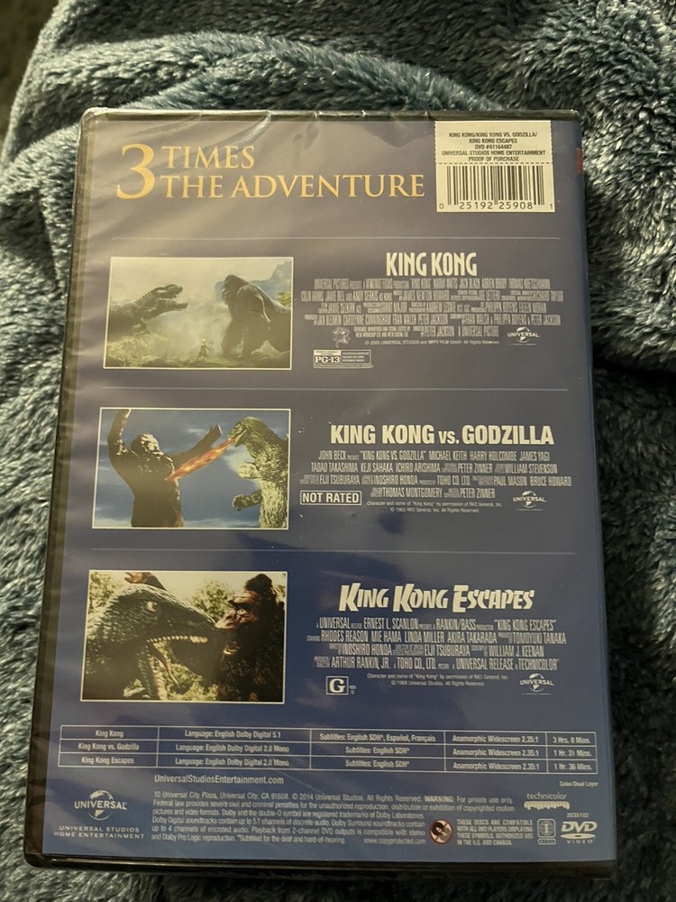 Experience the thrill of the classic movies with this Universal King Kong Box Set, featuring three films - King Kong vs. Godzilla, King Kong Escapes, and King Kong vs. Godzilla II. Directed by Peter Jackson, this set includes movies starring Andy Serkis, Jack Black, and Adrien Brody. This DVD set is rated PG-13 and includes subtitles in English, French, and Spanish. With a mix of action, sci-fi, fantasy, horror, drama, thriller, and mystery, this box set is perfect for any movie lover. The DVD is in DVD: 1 (US, Canada...) format and is captioned in widescreen. Get your hands on this former rental and enjoy the complete series box set today.