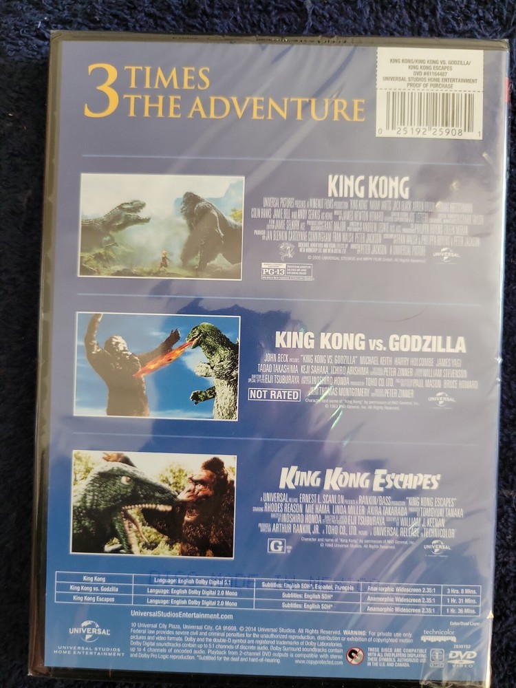 Universal King Kong, King Kong vs Godzilla, King Kong Escapes Movie DVD. Factory sealed
