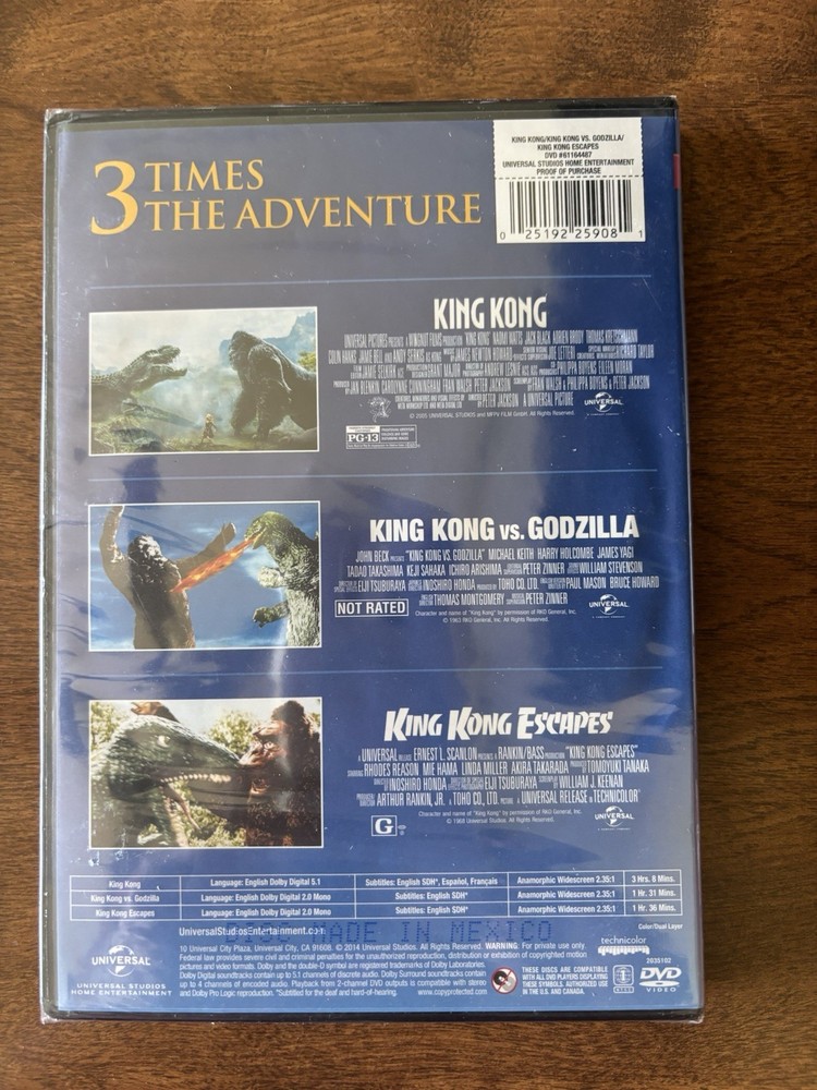 Absolutely love this action-packed King Kong DVD collection! The movies are thrilling with epic battles and classic monster showdowns. Picture quality is great, and it arrived fast and well-packaged. A must-have for any kaiju fan—definitely worth adding to your collection!
