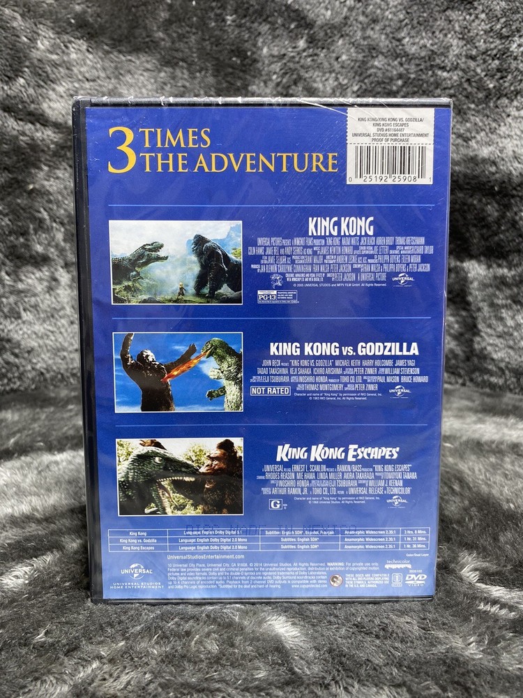 Immerse yourself in the world of classic monster films with this Universal King Kong movie DVD set. Directed by Peter Jackson and starring Andy Serkis, Jack Black, and Adrien Brody, this box set includes King Kong vs. Godzilla, King Kong Escapes, and the 2014 remake of King Kong. With a PG-13 rating, this action-packed set is perfect for fans of sci-fi and fantasy, adventure, horror, drama, and thriller & mystery genres. Enjoy the captivating storyline, thrilling cinematic movement, and exceptional musical score by James Newton Howard. This movie DVD set comes in a tall/DVD case and includes features such as captioned language, a widescreen format, and a former rental label. Get your hands on this complete series box set, which includes season 1 and 2 of King Kong vs. Godzilla (1962 film), and experience the mystery and supernatural elements of Escape, Creatures/Monsters, Christmas, and more.