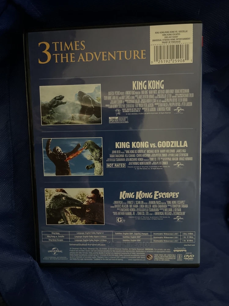Universal Monster movie Kong vs Godzilla, King Kong Escapes 3 cult films DVD.