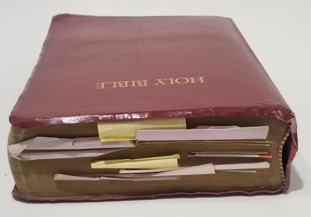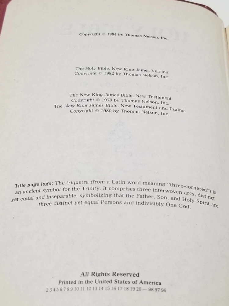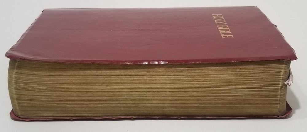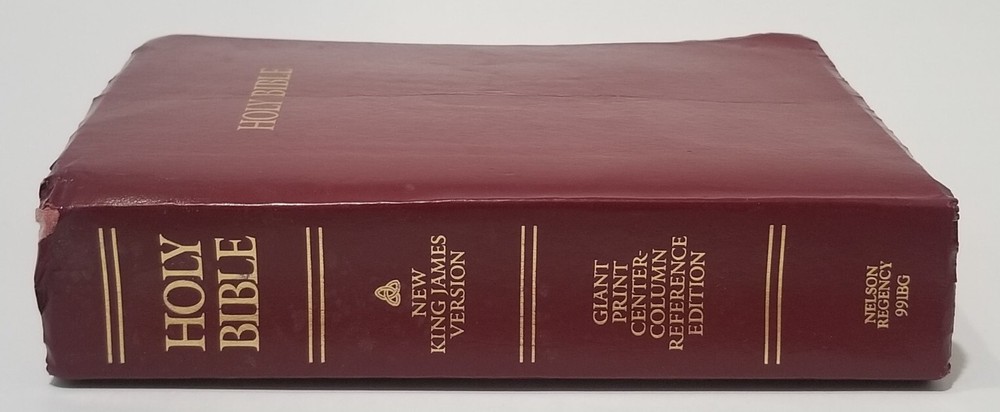 This faux leather bound Holy Bible is a great addition to any religious and spiritual collection. The New King James Version text is easy to read with its giant print and red letter features. The center column reference edition includes a plethora of references to help deepen one's understanding of the text. Published in 1994 by Thomas Nelson, this nonfiction narrative is appropriate for young adults, ages 9-12, and adults of any age who are interested in furthering their knowledge of religion and beliefs. The book is personalized according to its intended audience.