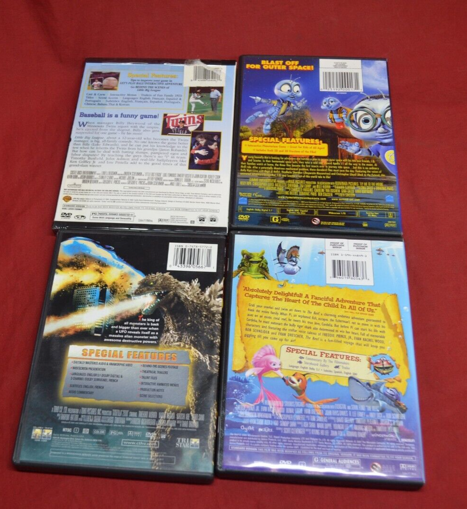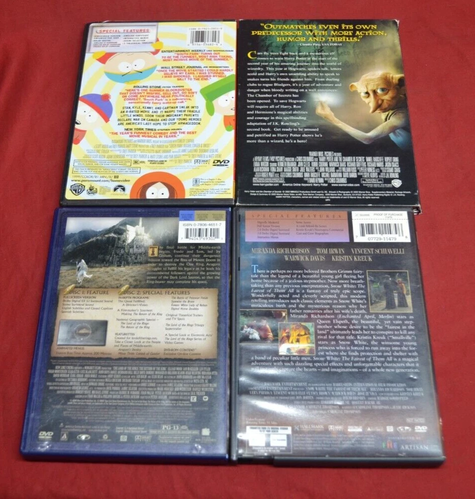 MOST DISCS AND CASES ARE IN VERY GOOD SHAPE SOME SMUDGE MARKS (FINGERPRINTS) THE HARRY POTTER FILMS ARE FULL FRAME SEE PHOTOS FOR ALL YOU WILL GET SOME ARE 2-DISC AND ONE IS A 3-DISC SET...