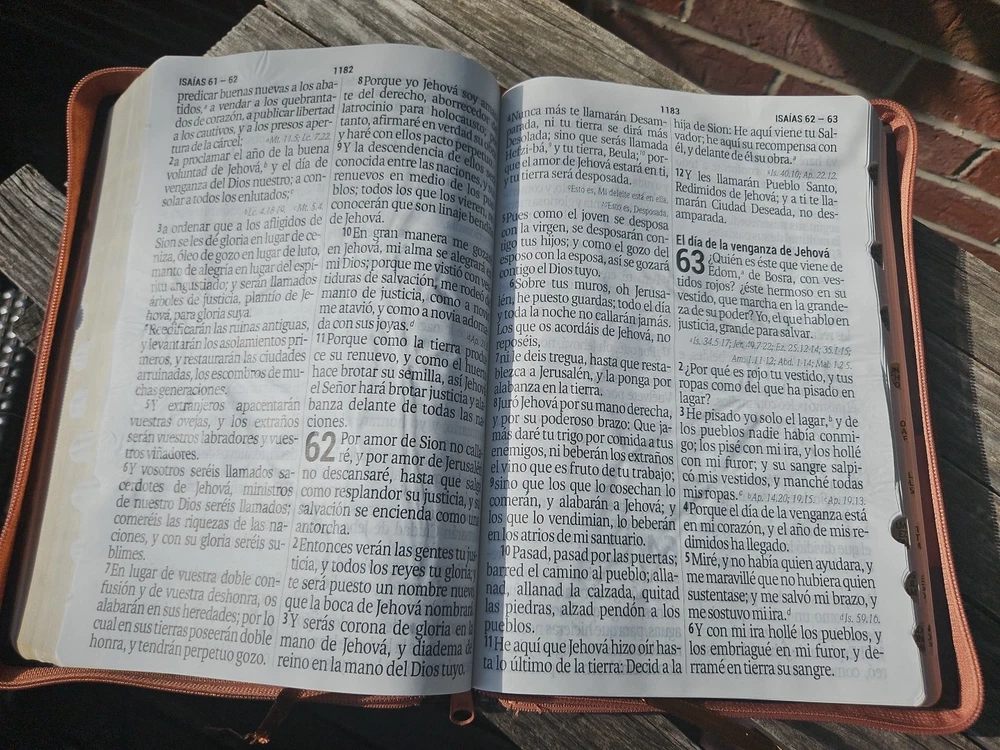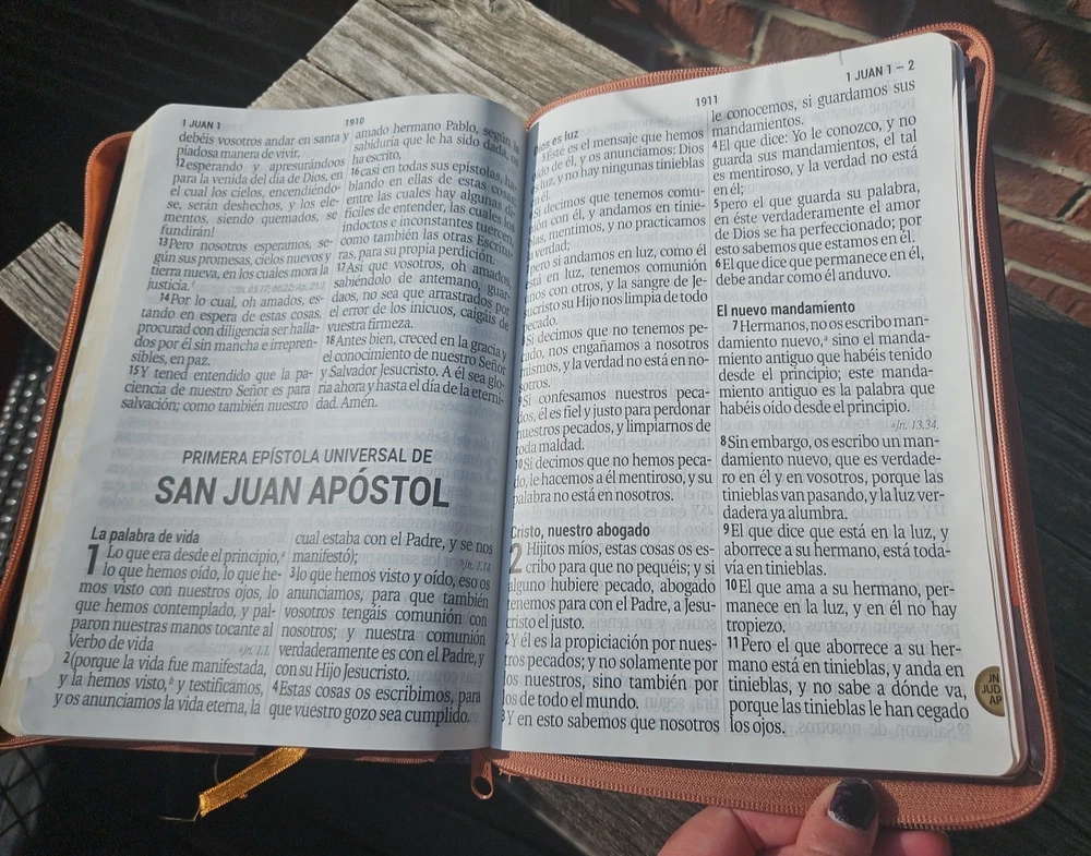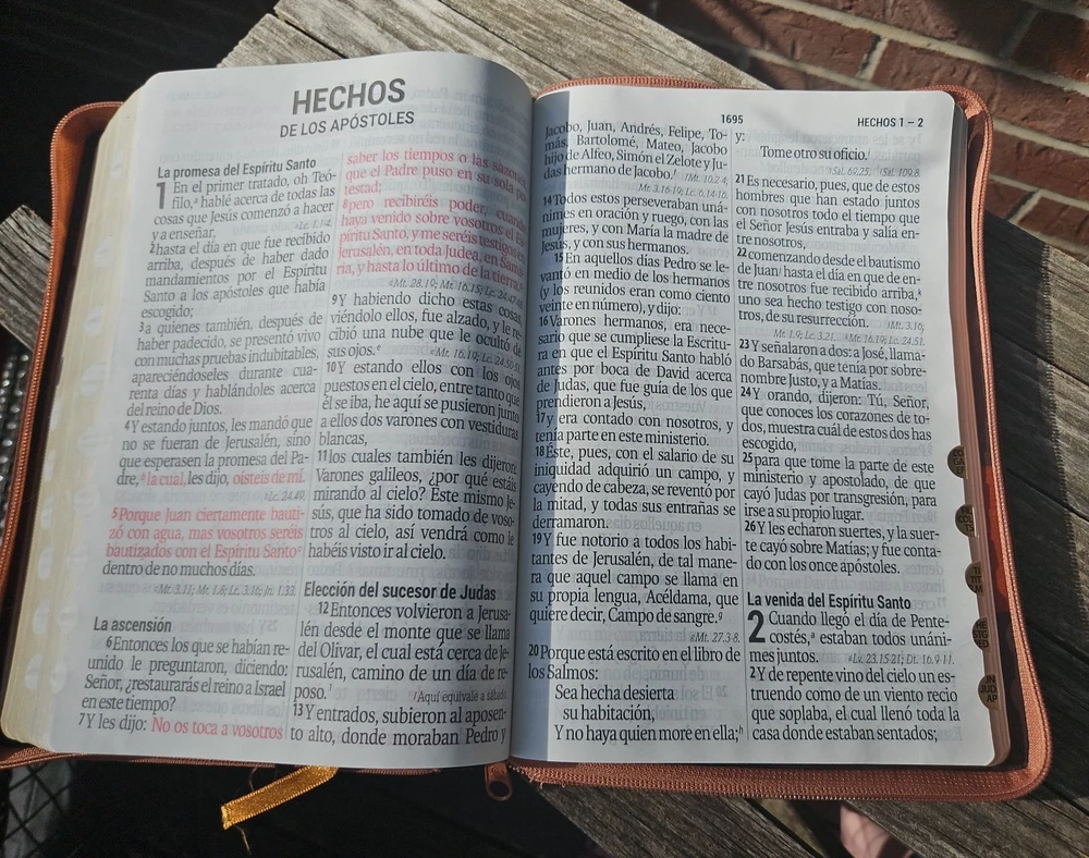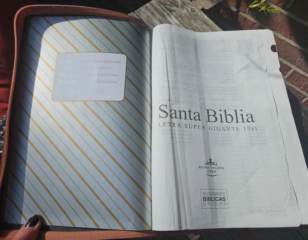 This Spanish Bible is amazing—huge 19-point text makes reading so easy, even for tired eyes! The thumb index helps navigate quickly, and the sturdy zippered cover keeps it protected. Perfect size, not too bulky but still spacious for notes. Super clear print and great quality—exactly as described with real photos. Fast shipping and great seller communication. Highly recommend for anyone needing a large-print Bible!