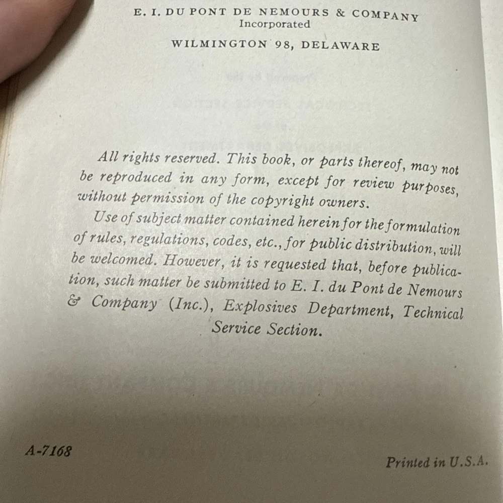This vintage 1949 DuPont Blasters’ Hanboook is in really great shape for its age. Book shows normal age and wear but is very clean overall. All of the pages are present and complete and I don’t see any rips or tears. Spine is strong and in great shape. It would be difficult to find a better example. Don’t miss out!