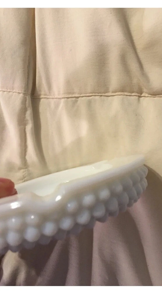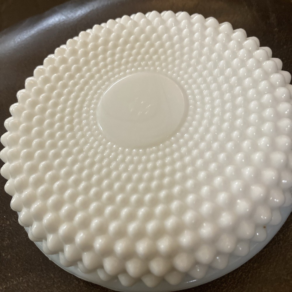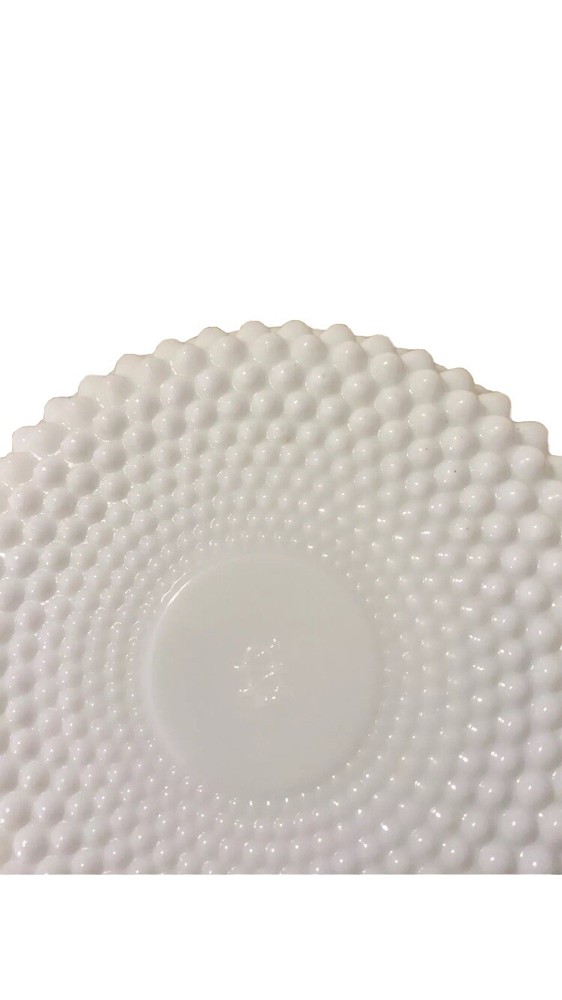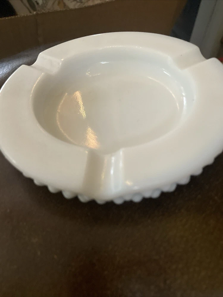 This vintage Westmoreland milk glass dish is a stunning addition to any collection. The white, studded design adds a touch of elegance to any room. Made of high-quality glass, this contemporary original is a perfect example of milk glass production style. The round shape and 4 1/2” size make it perfect for use as an ashtray or for serving your favorite snacks.