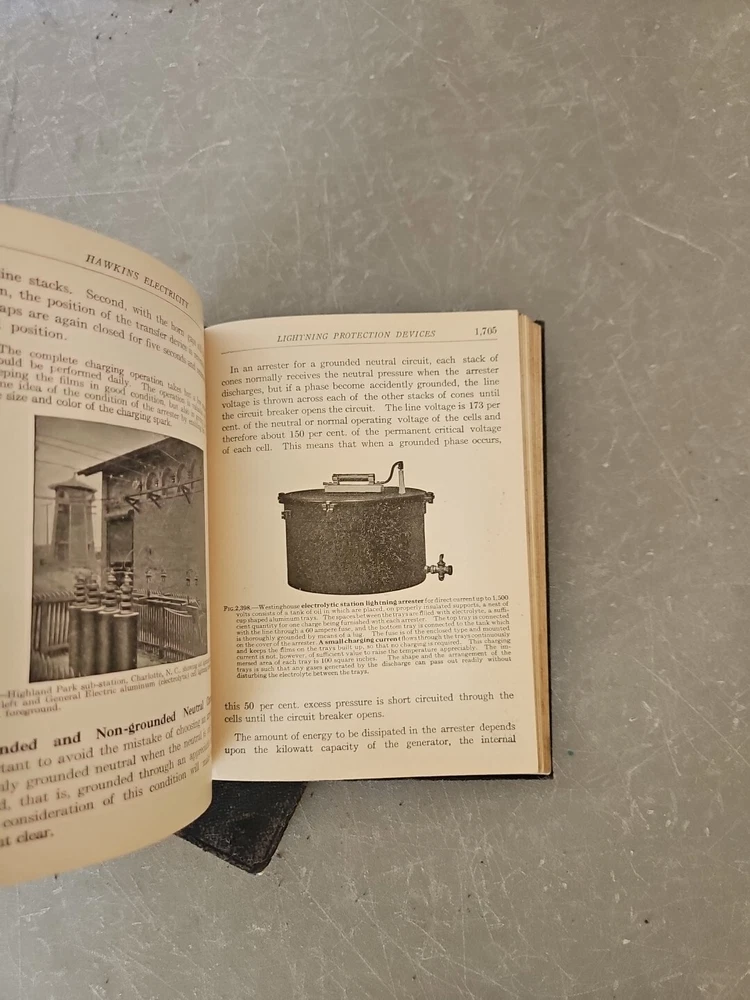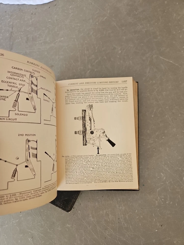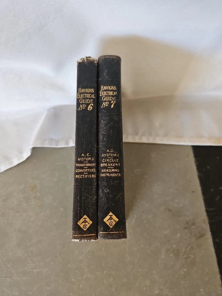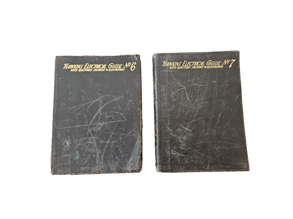 This lot of two vintage books from 1914-15 contains Hawkins Electrical Guides 6 & 7, which are perfect for anyone interested in the history of electrical engineering. The books are bound in leather and printed in English by Hawkins and Staff in New York NY USA. The guides feature Q&A illustrations and are illustrated with special attributes that make them a unique addition to any collection. The author is unknown, but the books cover a range of topics related to electrical engineering. These books are a great find for collectors of antique electrical equipment and manuals. See pics for description.