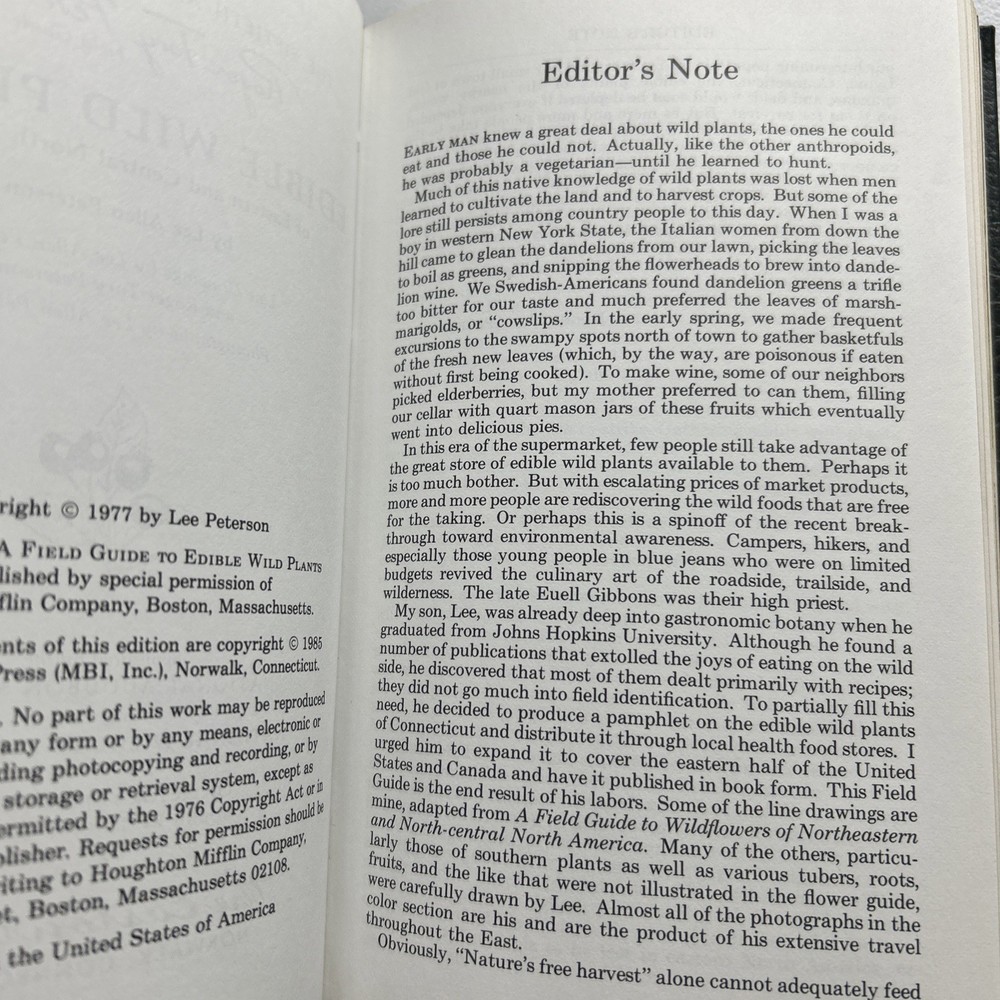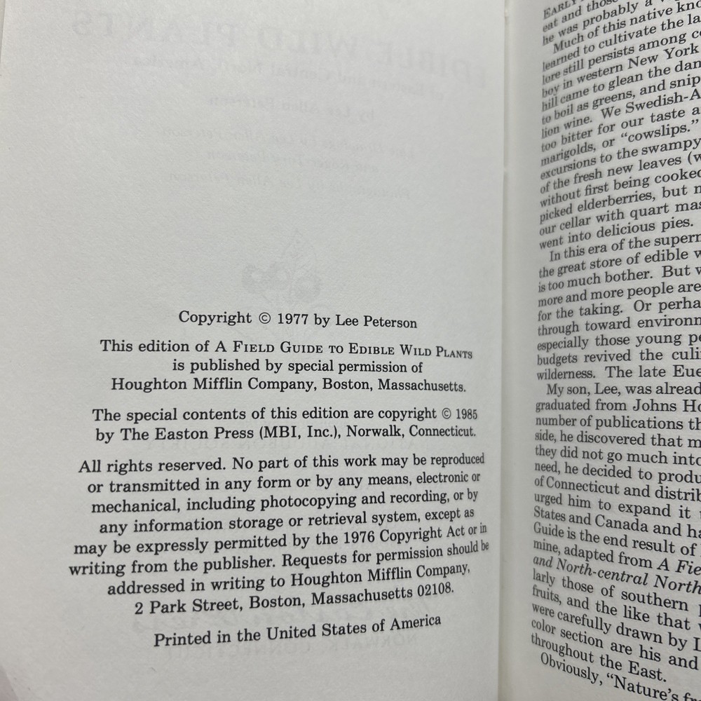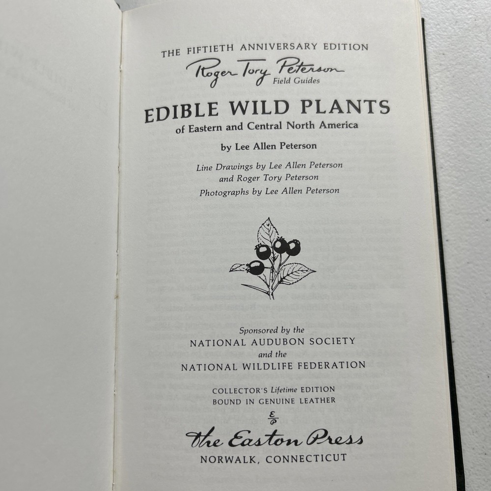 Delve into the natural world with the vintage 1985 Roger Tory Peterson Field Guide to Edible Wild Plants. Published by Easton Press, this leather-bound treasure is a must-have for enthusiasts of outdoor adventures and nature education. Authored by Lee Allen Peterson and richly illustrated by both Roger Tory Peterson and Lee Allen Peterson, this guide is an indispensable companion for identifying and appreciating the flora that sustains and heals. Crafted with the discerning collector in mind, this edition boasts gilt edges, an unused bookplate, an attached ribbon bookmark, and gilt embellishments, enhancing its visual appeal and longevity. Presented in English and specific to North America, this original piece is not only a functional field guide but also a piece of literary art to be cherished and shared.