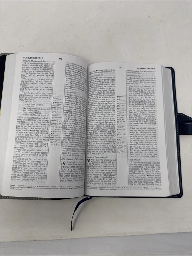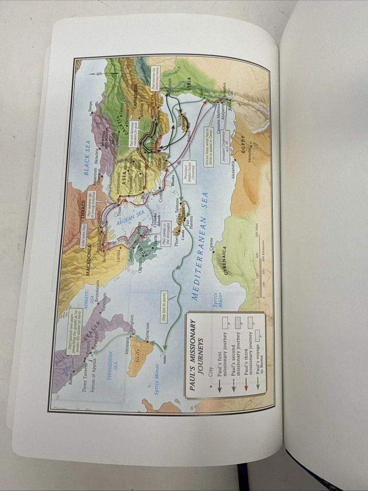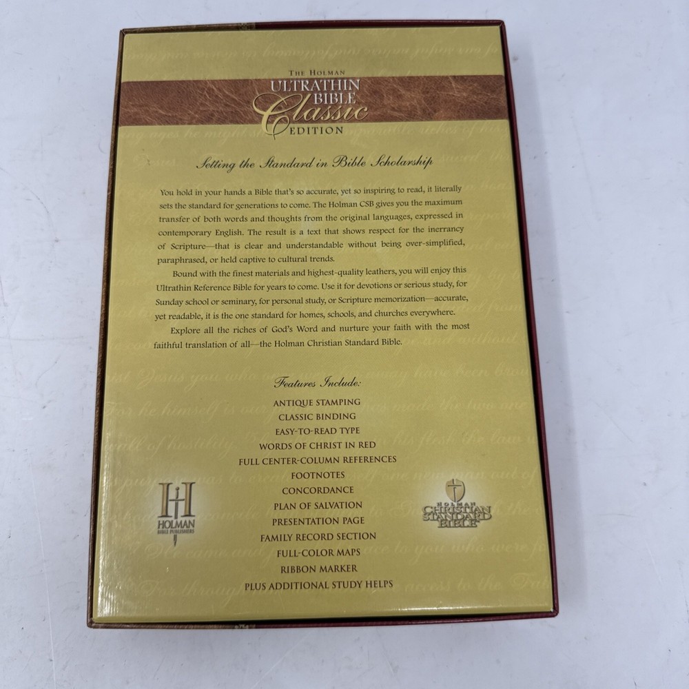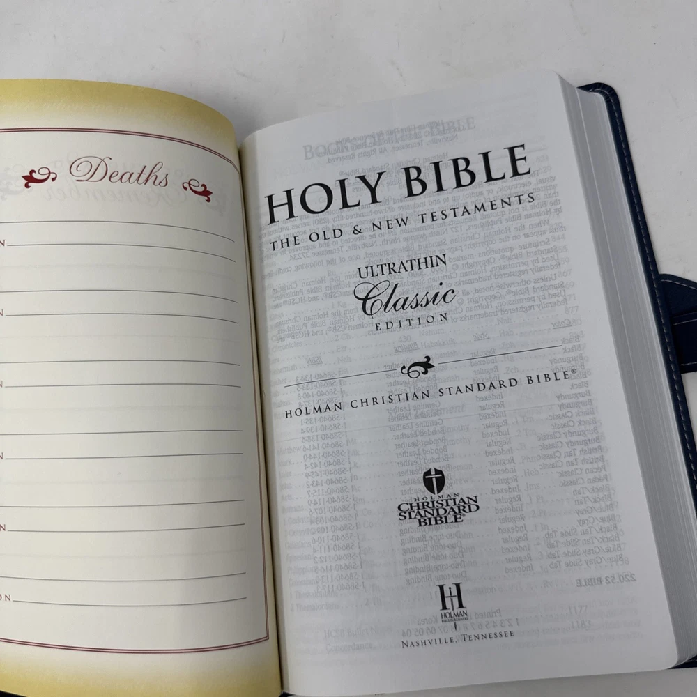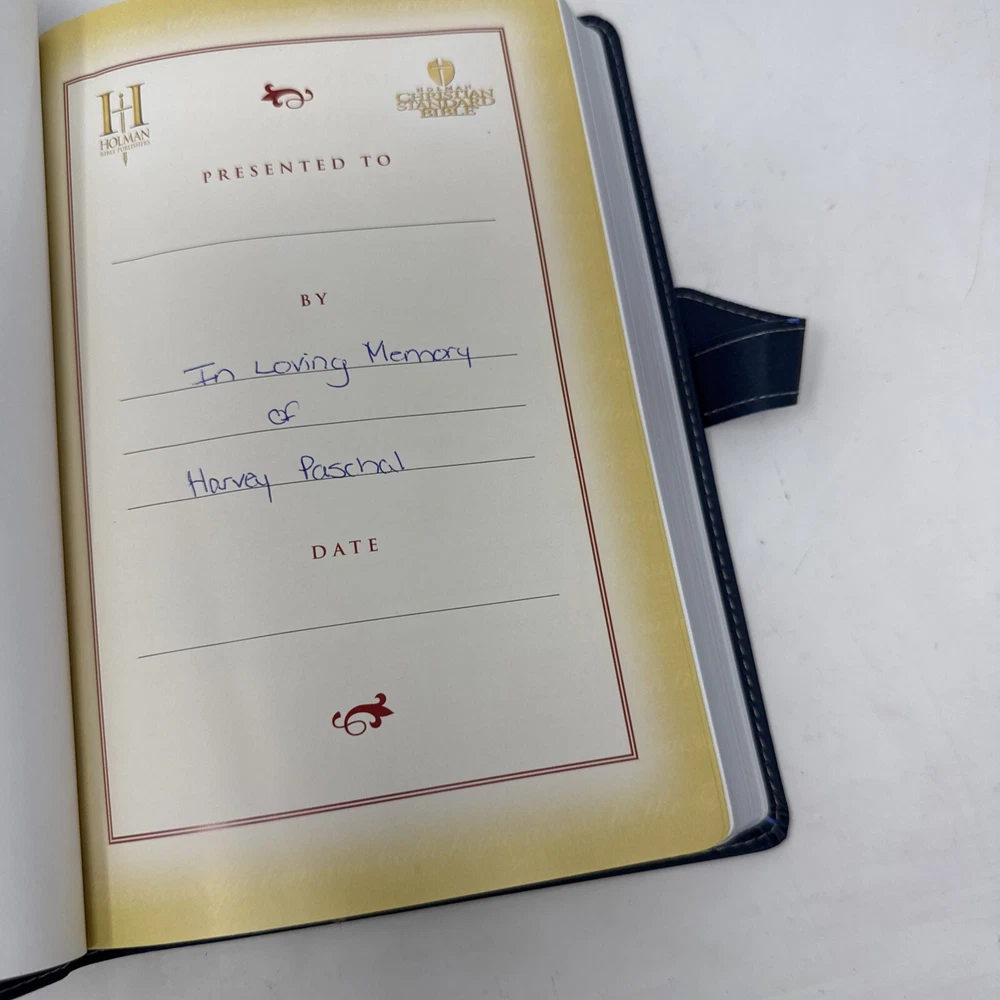 This vintage Holman Bible is a beautiful, ultra-thin edition with a classic duo-tone leather cover. The slight stain and handwritten name add character, but the pages are clean and intact—perfect for daily use or as a meaningful keepsake. Ships quickly, great value for a well-loved Bible!