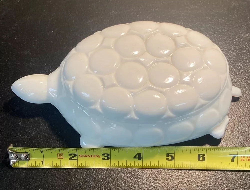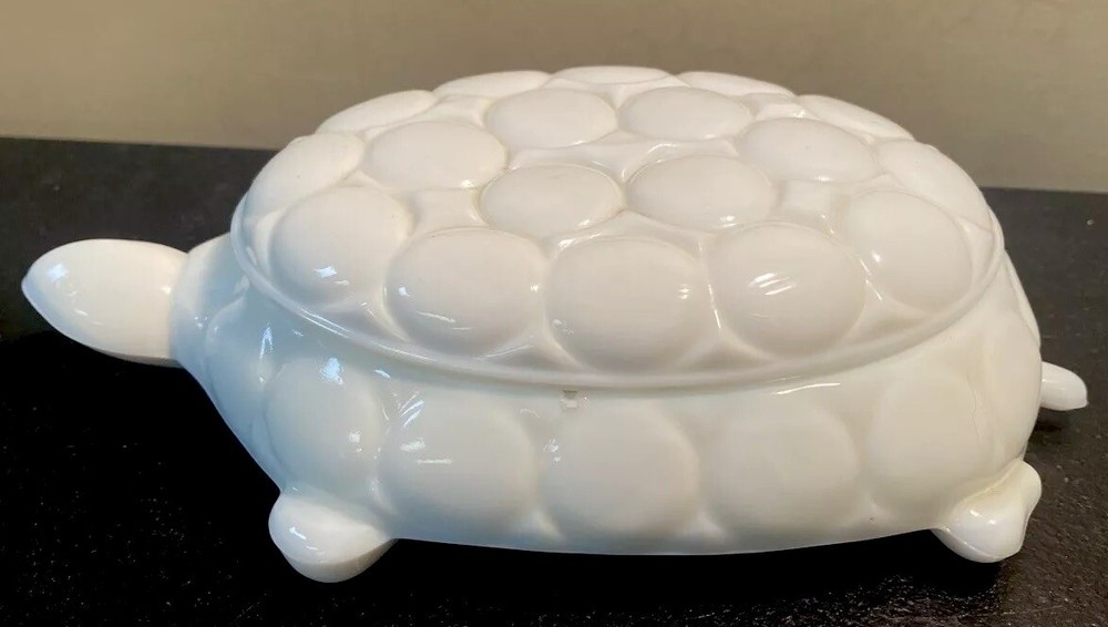 Please see photos 4 and 5 for the only flaw I found. Crafted with precision, this VTG MCM Westmoreland Milk Glass Thousand Eye Turtle Cigarette Box exudes the timeless elegance of Mid-Century Modern design. The white milk glass, notable for its eye-catching thousand-eye pattern, brings a touch of retro charm to any space. With its distinctive turtle shape, this piece is not only a functional cigarette box but also a unique trinket that doubles as a conversation starter. Originating from the United States, this original Westmoreland piece captures the essence of North American craftsmanship. The piece is a testament to the style and quality of the era, making it a must-have for collectors and enthusiasts of Mid-Century decor. Whether for personal use or as a thoughtful gift, this cigarette box or trinket box is a blend of form and function, artfully preserving the sophistication of the past.
