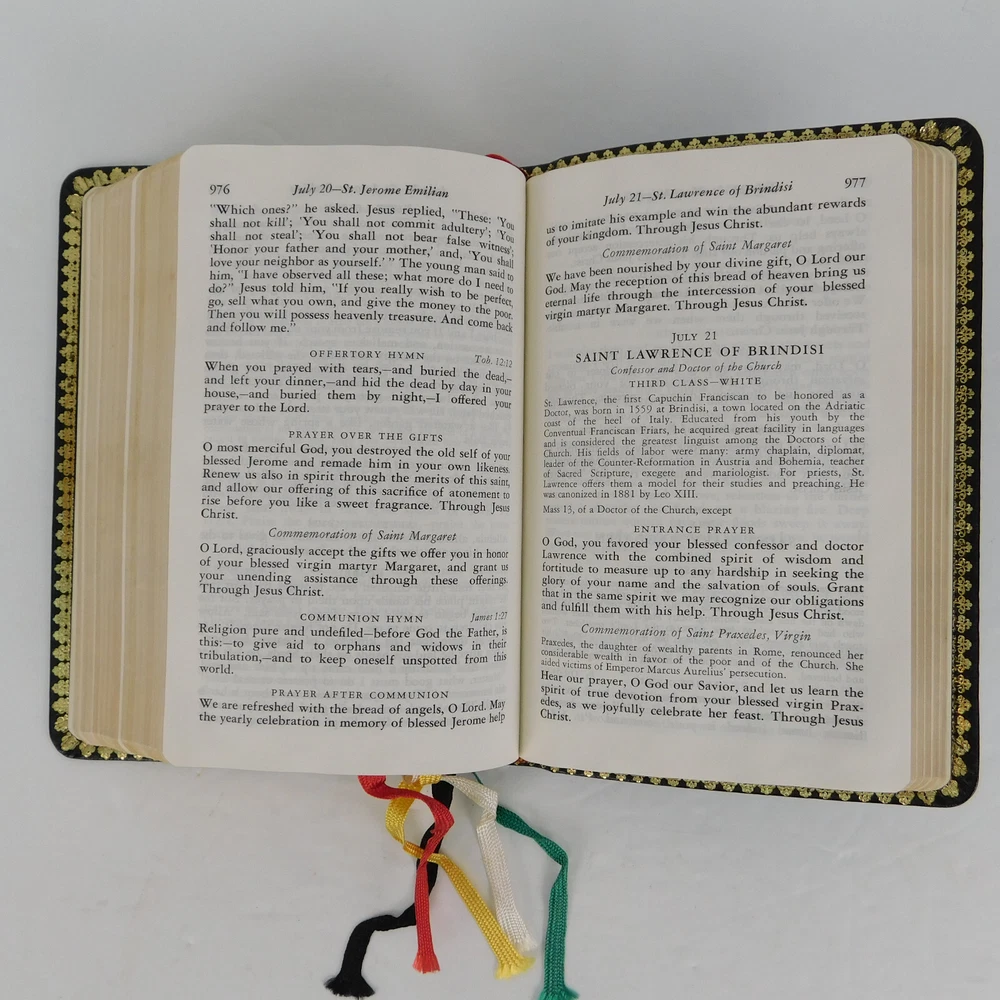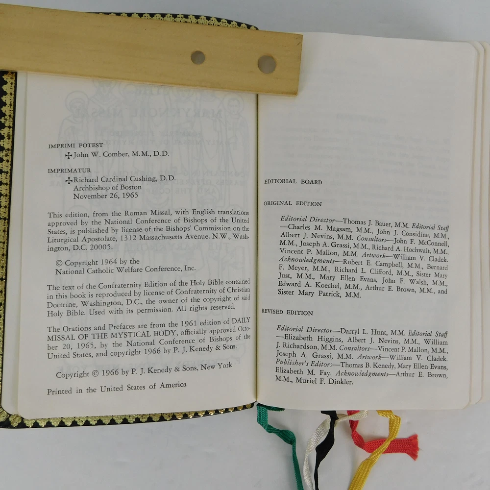 VTG Maryknoll Daily Missal Vatican II Edition Leather Bound Gold Edge In Box. Great used condition. While the box has some light signs of age, the book itself is in great condition with no tears, rips or stains. There is some writing on the first page. Please see pictures for more details on condition. Thank you! This vintage Maryknoll Daily Missal, published by P.J. Kenedy & Sons in 1966, is a treasure for any collector of religious books. The leather-soft binding and gold edge add to its vintage charm. This original edition is in excellent shape and comes in its original box. The book contains a wealth of information on Christianity and religion, making it a valuable addition to any library. The Missal is well suited for collectors of antiquarian and collectible books and magazines. The language used is English, and it contains no personalized content. The book's subject is religion and spirituality, and it is an original and not a facsimile. THANK YOU FOR LOOKING! :) Please note that by "buying now" you have read and are agreeing to our policies below. SHIPPING We ship Daily (Mon-Fri) and will ship within 1 business day of receiving payment for an order via USPS, FED-EX OR UPS with tracking ! CHECKOUT Please make sure that your address on file with Ebay is complete and correct as we are required to use the address you have listed with Ebay. Any changes to the shipping address needs to be done by the Buyer BEFORE you pay. We offer International Shipping through Ebays Global Shipping Program. RETURN POLICY Our return policy is 30 Days. Any return MUST be sent back to us complete and in the same condition as delivered to you. If you purchased a brand new item, it MUST be returned brand new (Sealed and Unopened). A restocking fee may apply. PLEASE NOTE THAT SHIPPING WILL NOT BE REFUNDED. Defective claims must be made within 4 days of receiving item. CUSTOMER SERVICE AND FEEDBACK Your satisfaction is our top priority! We understand that it is difficult buying something you can not see in person. We try and resolve that by offering free shipping and returns within 30 days. Our goal is to earn your 5 star 100% feedback. Please leave us positive feedback and we will do the same for you! We do not manufacture the products we sell so please rate our performance as a seller and not the product. VeRO MEMBERS NOTE: We are not affiliated with, nor endorsed by the brand mentioned in this listing. All logos, trademarks and copyrights are acknowledged, and are solely used for descriptive purposes for the item/items offered. All items are authentic and legally acquired, thus covered under the law of First Sale Doctrine. All required measures (seller's picture/image) have been taken to ensure that this listing is in full compliance with eBay policies.