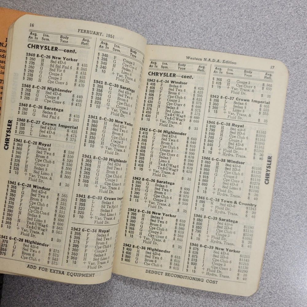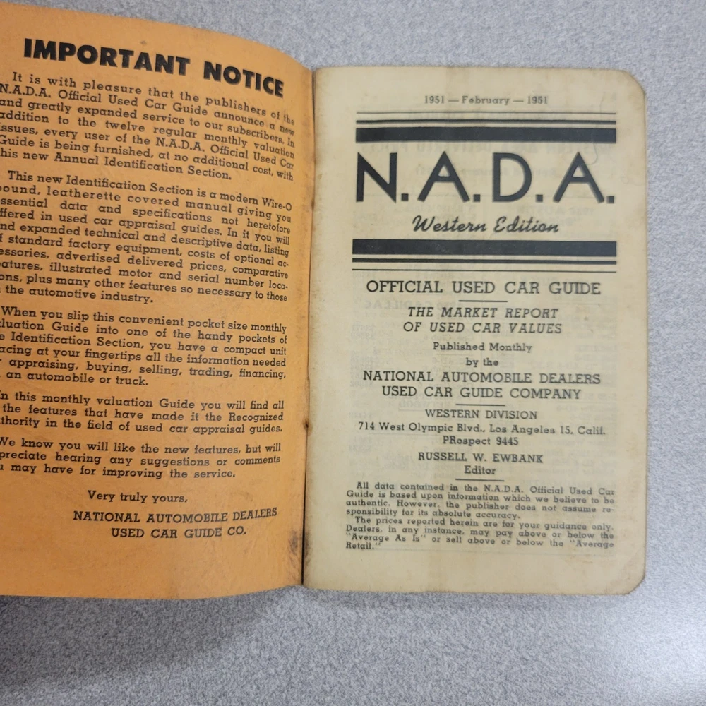VTG NADA Official Used Car Guide 1951 Leather Spiral-bound W/ Western Supplement