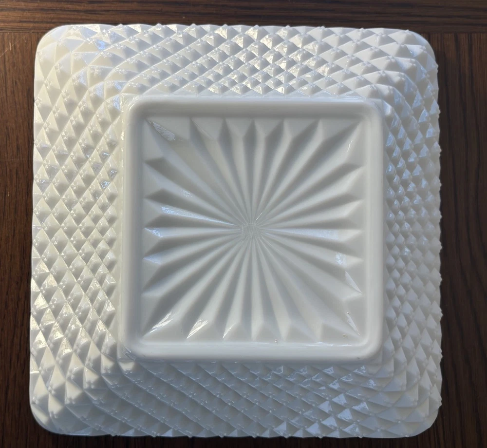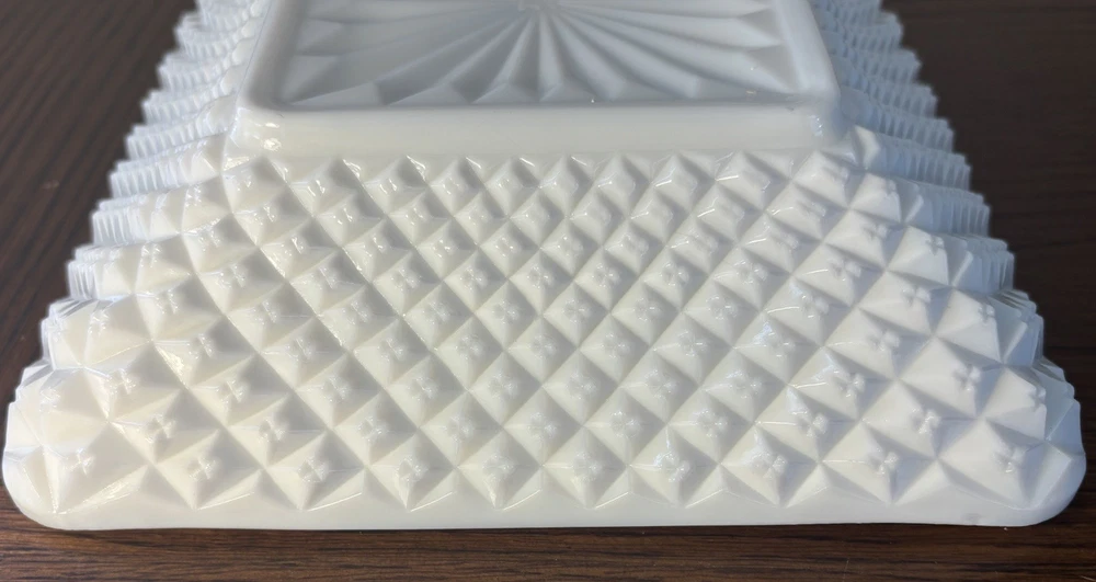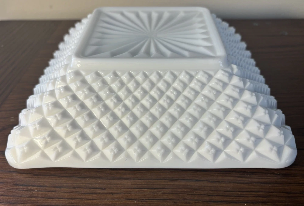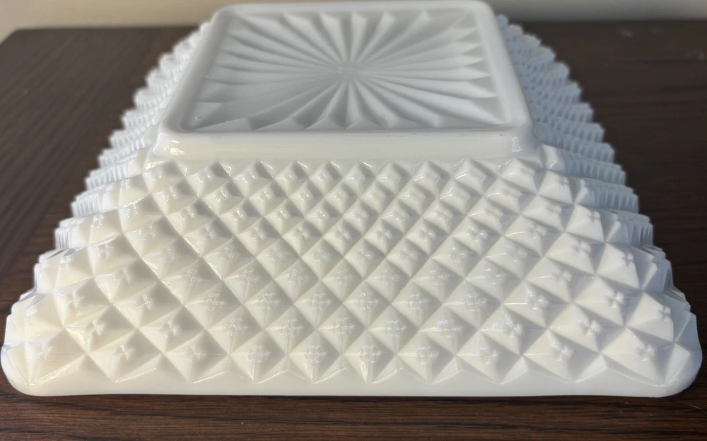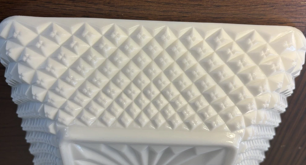 Description We are offering a very large milk glass ashtray. Although it is not marked it appears to be a Westmoreland product in the English Hobnail pattern. This ashtray would be appropriate for cigars or may be used as a catch all. Condition This ashtray is intact with no cracks. There are a couple of small chips by one of the cigar/cigarette grooves. Please review photos closely as these are an integral part of the description and ask any questions before purchase. Measurements (if applicable) H. " W. L. " Everything else We are very open to questions and feedback and would love to hear from you with questions or clarifications before you buy. If you aren't sure about something or need more information it is much easier to handle before you buy than after for all involved. Additional photos are available upon request. This piece will be individually wrapped and secured firmly in the shipping box for safe delivery to your home. We will combine shipping when feasible. We ship USPS Ground Advantage. We will ship same or next day but can't guarantee how quickly USPS gets it to you. If you need the item sooner please let us know before buying and we can offer a different shipping method. Final shipping cost is determined by buyer's location.