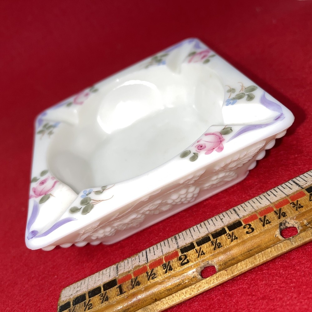 VINTAGE WESTMORELAND MILK GLASS GRAPE & VINE PATTERN ASHTRAY loc v-1