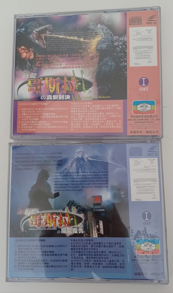 Video CD VCD 1074 1075 Godzilla MEI AH Video CD format. In like new condition. Shipping: USA: Chit Chats US Tracked $16 International: Inquire before bidding NOTE ON SHIPPING: I try and offer competitive rates when it comes to shipping. I offer a flat rate. If you feel shipping is expensive for your region, please feel free to send me a best offer. Thank you for your interest. I am also a part time seller/reseller and therefore handling times can take 1-3 days. I will do my best to make next day delivery but this may not always be possible, especially for larger items. Thanks for your patience!