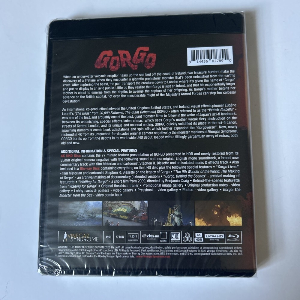 You are buying a Vinegar Syndrome UHD 4K Gorgo-widescreen-xtra feature-monster-Brittish Godzilla-- fast/secure/tracked shipping! The Vinegar Syndrome UHD 4K release of "Gorgo" is a collector's edition monster movie in widescreen format, featuring British Godzilla-style effects. Directed by Eug Ne Louri and produced by Herman King and Wilfred Eades, this 1961 horror film comes with bonus features like a video comic book, trailers image gallery, and behind-the-scenes featurettes. With a run time of 77 minutes and English language options, this Region-Free Blu-ray is a must-have for fans of science fiction and monster movies. See what else you can find in my eBay store-https://www.ebay.com/str/inkspotinventory -I combine shipping!! •All Cd's, Blu Rays, DVD's shipped 1st class in a padded envelope between cardboard pieces for extra protection! •All Magazines, art prints, Comics shipped bagged and boarded for extra protection! SHIPPING INFO- Shipping charges in the continental US-AK, HI. Puerto Rico & overseas determined. All international orders are subject to taxes, duties and VATs RETURNS INFO- We honor the 30 day eBay return policy if item is not as described accurately, pictures do not match item, or items is damaged during shipping. Please contact us immediately with picture proof of claim. We only accept returns if they are shipped back in the original condition in which they were sent. Thanks for looking!!