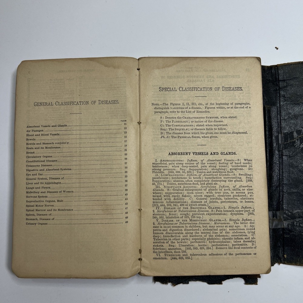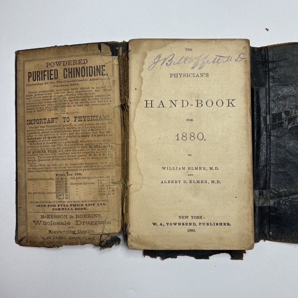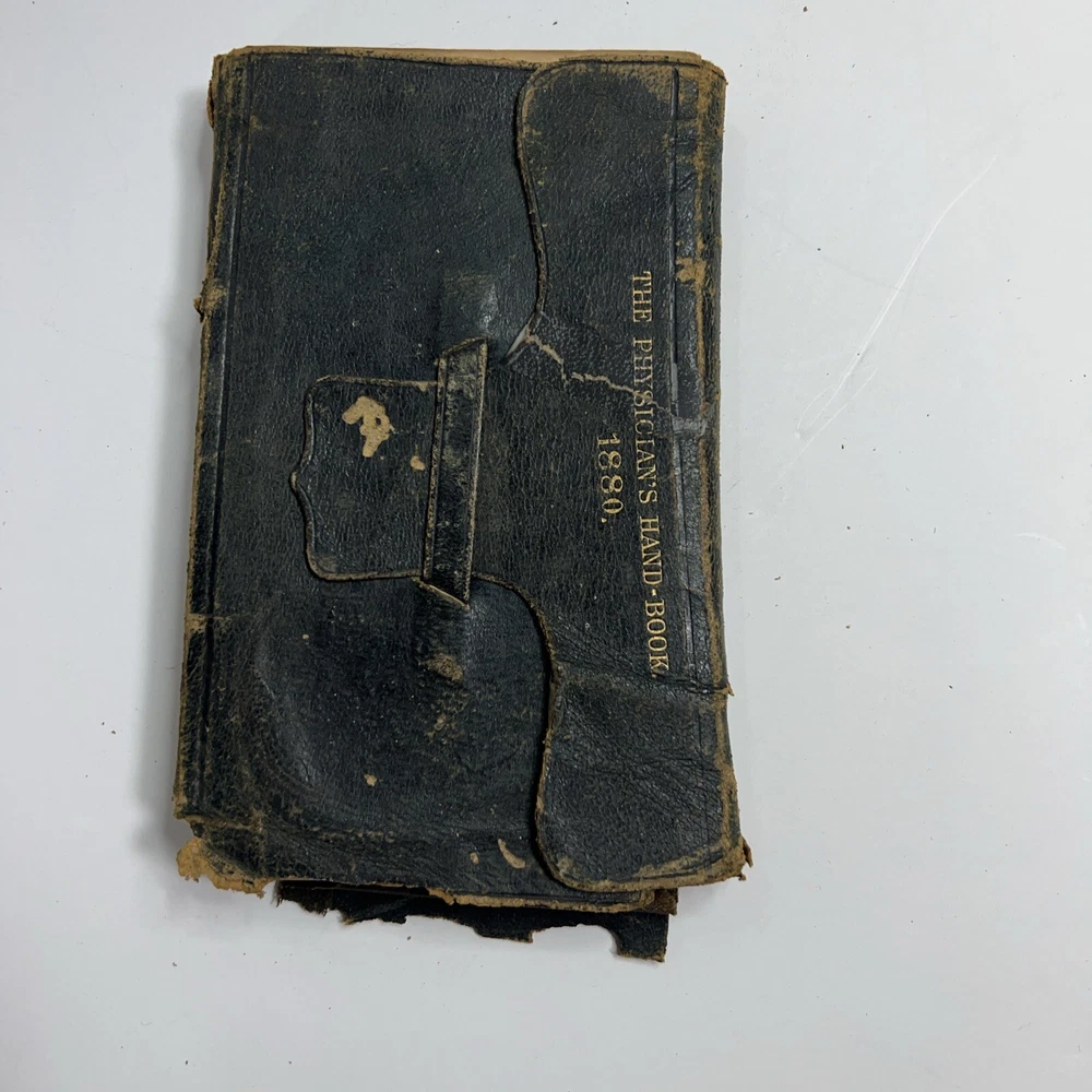 Very worn well used physician’s handbook of 1880. Great piece of history if you are a collector.