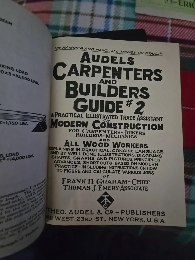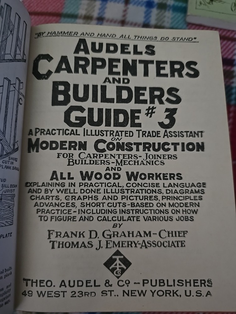 The Vintage 1940s Audels Carpenters and Builders Guide Set Volumes 1 to 3 is a valuable collection of leather-bound books authored by Frank D. Graham & Thomas J. Emery. Published by Theo. Audel & Company in 1949, this original set covers topics related to construction, building, and carpentry in English language. Perfect for those interested in home and garden subjects, this set is a rare find for collectors and enthusiasts of antique and collectible books. These are in excellent condition and don't appear to be used.