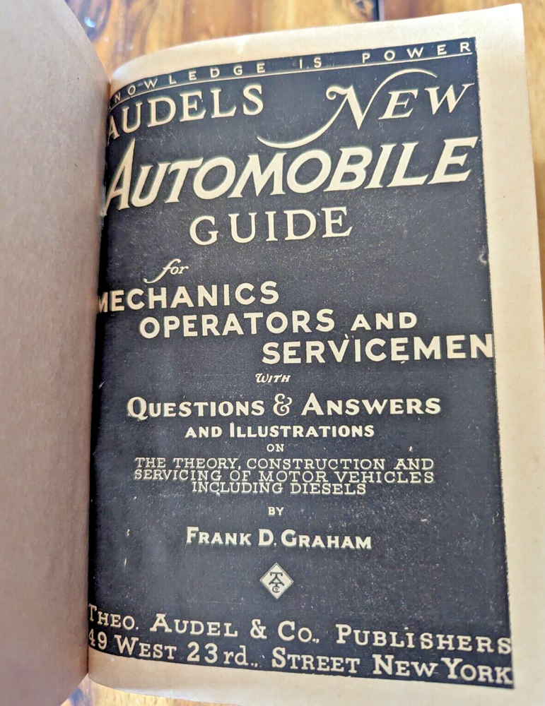 1947 ed. of Audels New Automobile Guide for Mechanics, Operators and Servicemen, by Frank D. Graham. Book is illustrated with line drawings, black & white photographs, contains instructions, and diagrams. 1607 pages. Good condition, no writing or markings, not a library book. Gently used. Nice copy for collection.