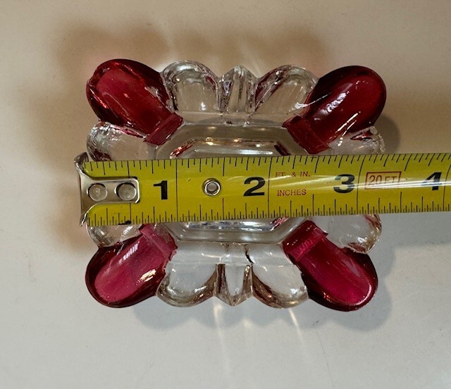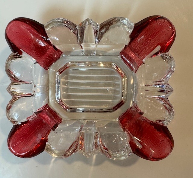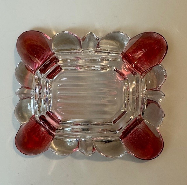 Vintage 1950 Ruby Red Cranberry Lashed & Clear Glass Ashtray by Westmoreland is a stunning piece of decorative pottery and glassware from the 1950's. Made of pressed glass in a rectangular shape, this ashtray features a vibrant red color known as Cranberry Glass. This vintage original piece is perfect for collectors or those looking to add a touch of retro charm to their home decor. It ships for free in the USA, making it a convenient and unique addition to any collection Set of 2 Ships FREE in the USA Z