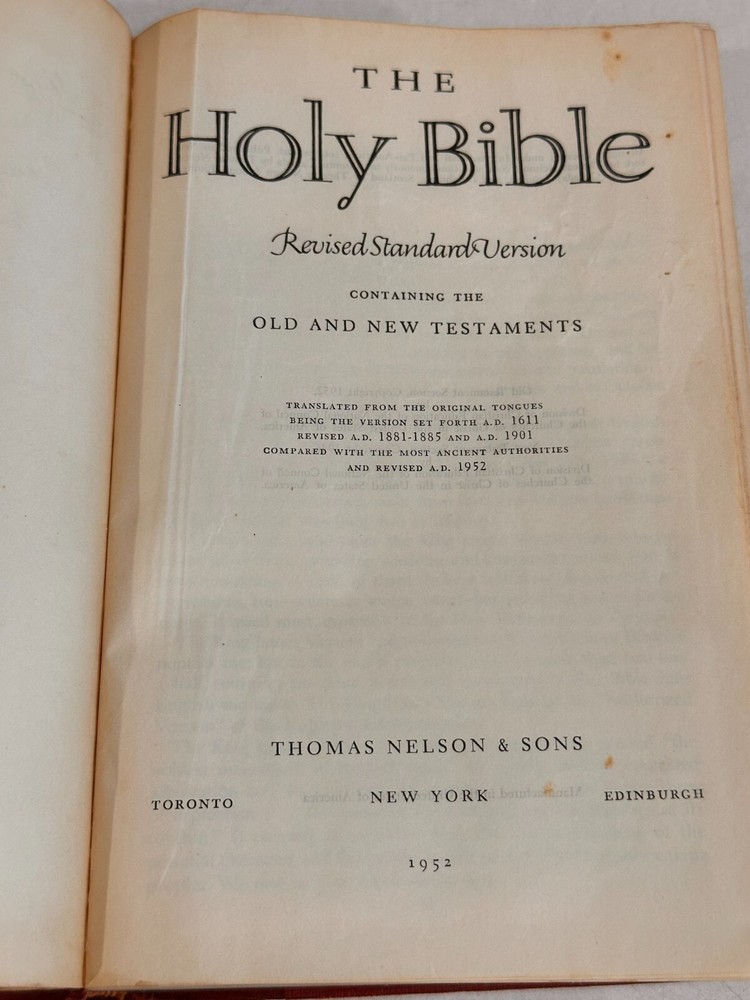 Vintage 1952 Red Leather The Holy Bible Revised Standard RSV Version Nelson - FREE SHIPPING. Condition is Used.