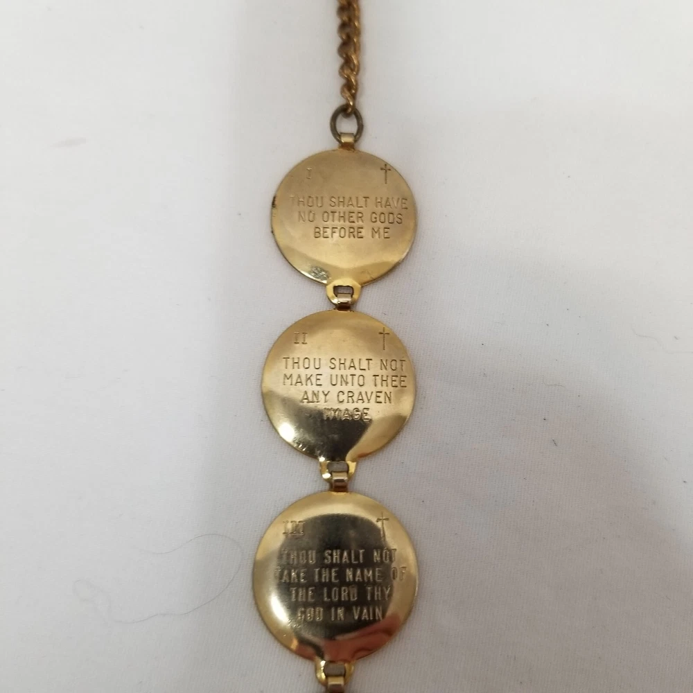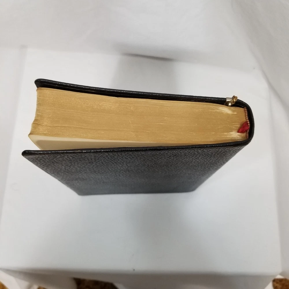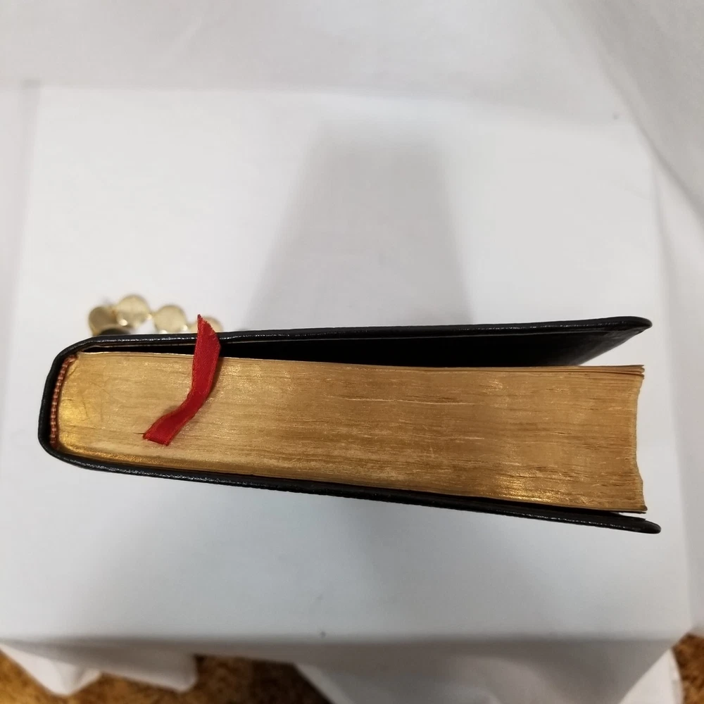 This vintage 1960 National Holy Bible is a beautiful collector's piece with its classic black hardcover, amber-tinted edges, and elegant red satin ribbon marker. The detailed family register, presentation pages, and historical maps add a special touch, making it perfect for both study and display. The included vintage 10 Commandments chain is a charming bonus—great condition and full of nostalgic charm!