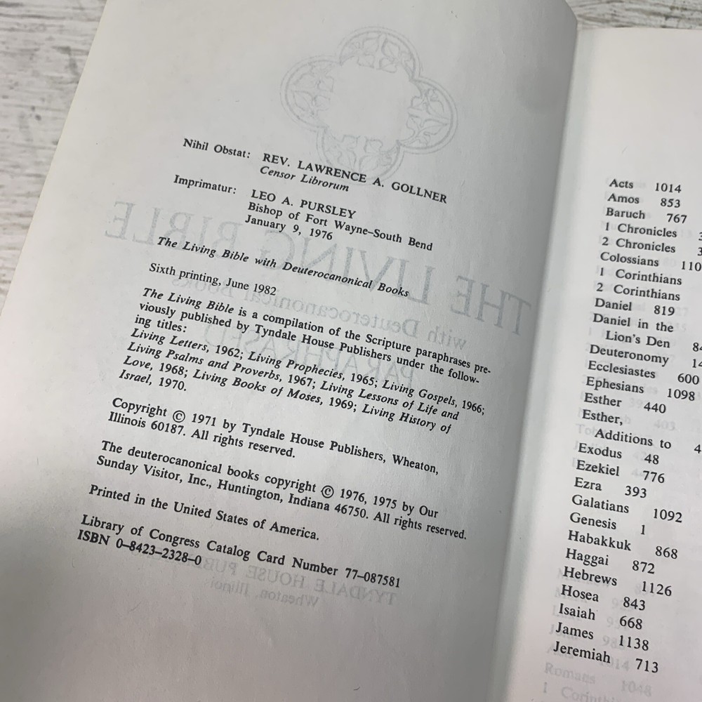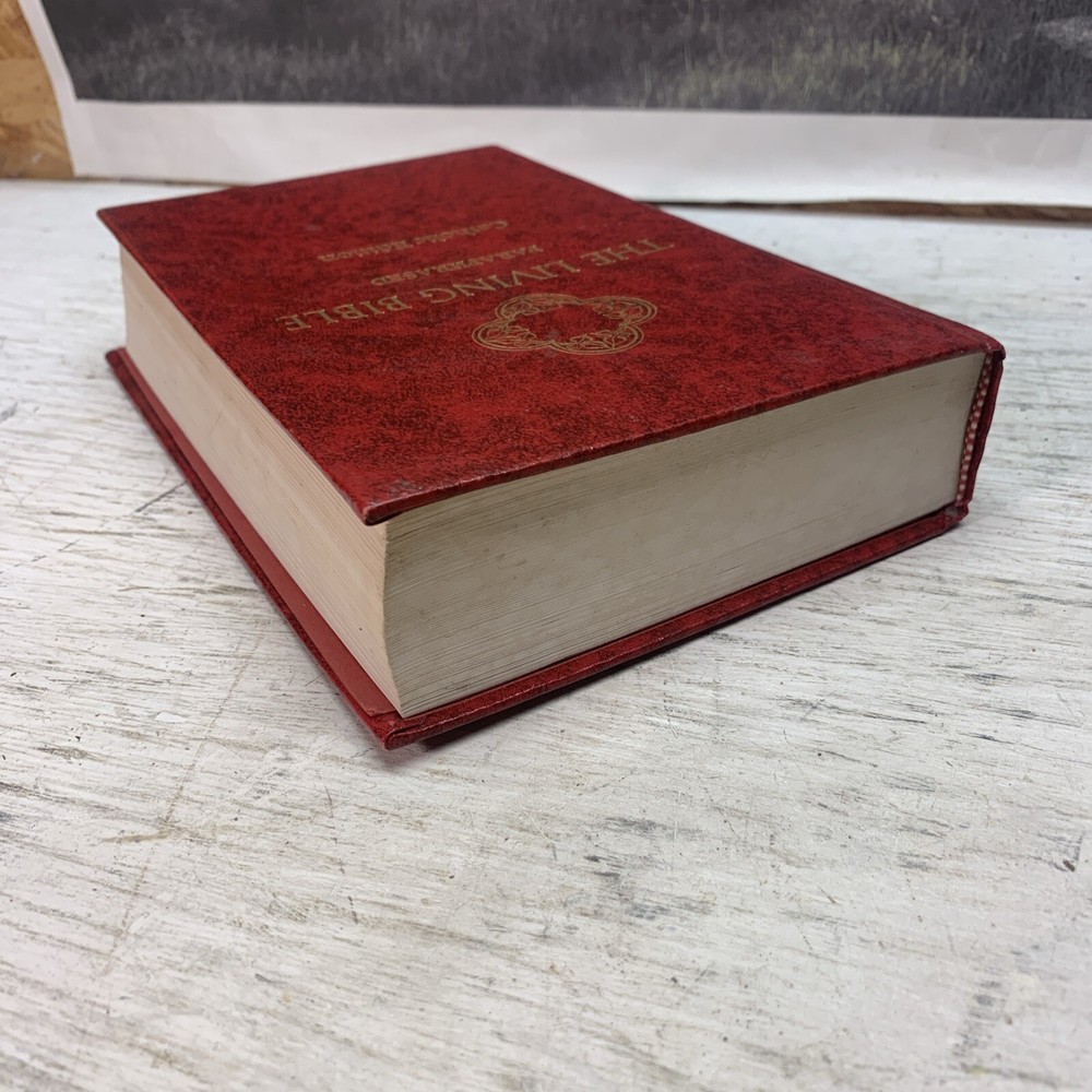This vintage 1971 edition of The Living Bible by Tyndale House is a hardcover manual with a red padded cover. It is a paraphrased version of the Bible in English, with a focus on Christianity and Jesus Christ. The book is personalized with the option to include a name on the front cover, making it a unique and valuable addition to any collection. This historical book is perfect for adults who are interested in religion and spirituality, with a focus on Bible studies and Christianity. It is a must-have for anyone who is looking for a deeper understanding of the Bible and its teachings. This book is a rare find for collectors and believers alike, and is sure to be a valuable addition to any library.