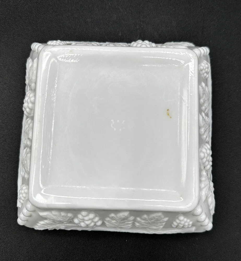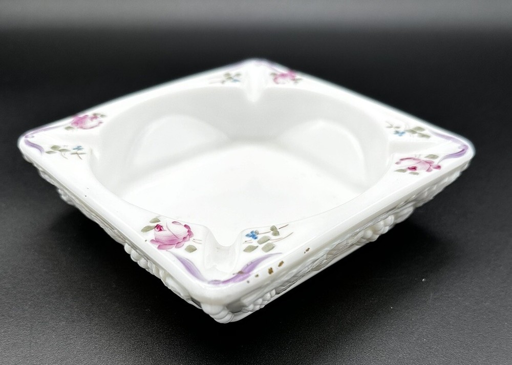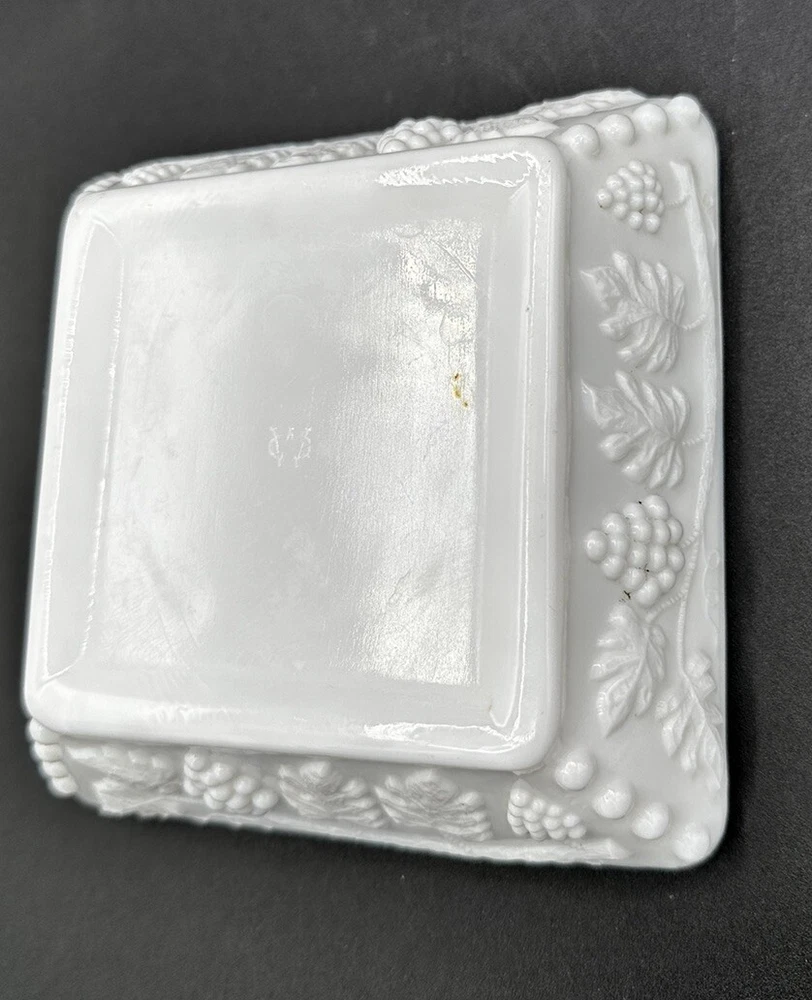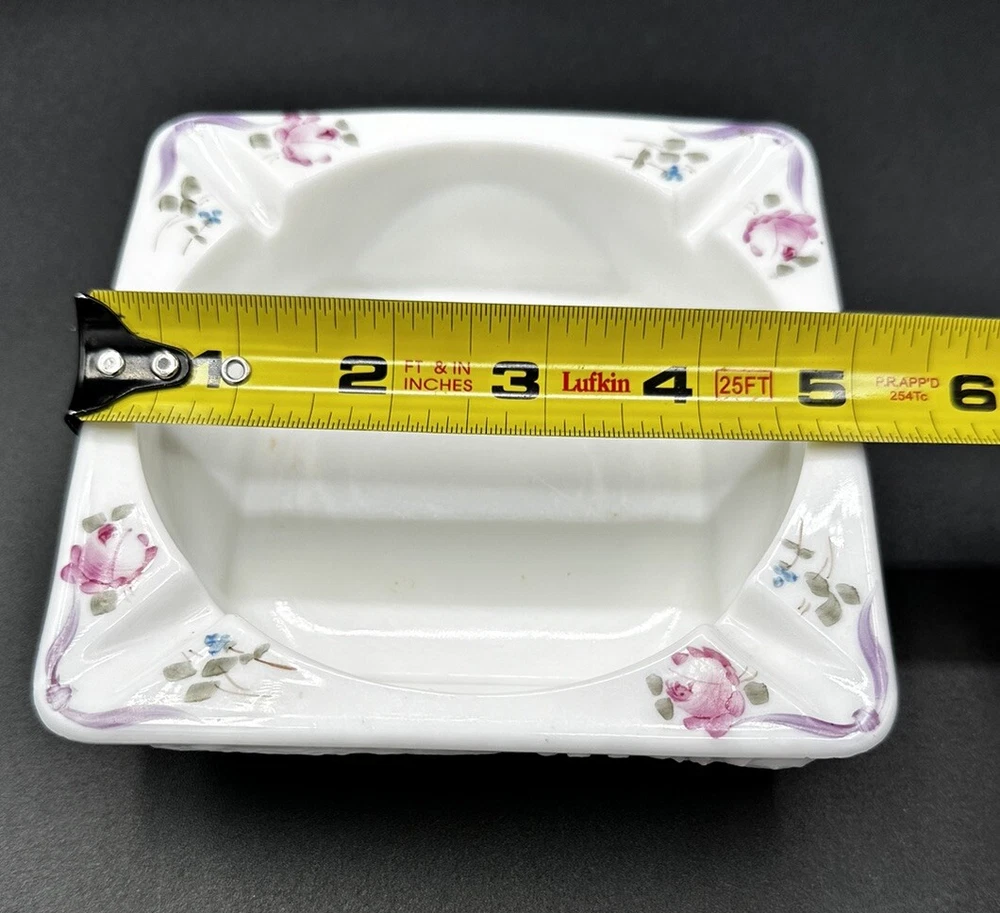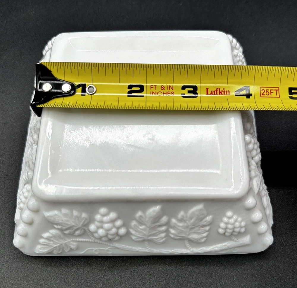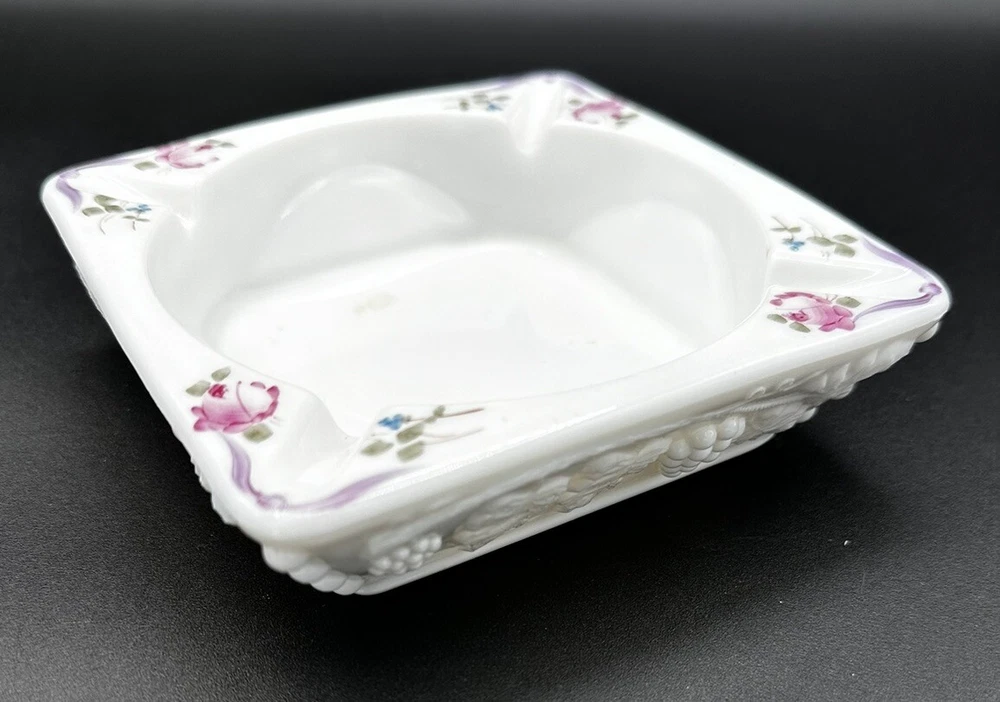 This elegant milk glass ashtray features a beautiful paneled grape pattern, handpainted on a square shape with a glossy finish. Manufactured by Westmoreland in 1960, this original piece is suitable for cigarettes and has a unique design with a bottom width of 3.75 inches and a top width of 5 inches. The backstamp is impressed and the production technique is fused glass. The Westmoreland Milk Glass Ashtrays are a perfect addition to any Mid-Century Modern collection with its floral and garden theme. The item weighs 1.8 inches, measures 4.25 inches in length and 1.5 inches in height. This ashtray is an original, licensed reproduction from the United States and is not handmade. Please look at all pictures and ask all questions, before purchase. No chips, cracks or nicks. Paint is in great shape. There is some staining inside the ashtray and on the bottom. Please read my policy. Thank you My Policy Thank you for coming to my store. I’m a picker and a flipper and I love looking for treasures and finding them new homes. Please check out my page, amazinggracepicker for more treasures. Smoke free Home ·I do not claim to be an expert on the items listed and describe them to the best of my knowledge. Please look at all the items pictures for the best detail. . Colors may vary, whether it lighter or darker, depending on the lighting situation. There will be a 50% restocking fee for any returns due to color, shape, size or buyers remorse. All sales final · Check the cost of shipping, it is not cheap! Items can include a S&H fee to cover my costs. · Due to the item's age, do not expect items to be in perfect condition and I may not describe every little scratch or spot. You get what is pictured, all items are sold "AS IS". · I ship to your registered eBay address only, because I use them to produce the shipping label and calculate the shipping costs. I will not ship to any other address. Remember to keep your address up to date, it is the buyer’s responsibility to keep their address current. Items returned as undeliverable, will be charged for my costs and labor to resend plus any fees that the Post Office charges for returning items. · No returns accepted If you are happy with the item, please leave positive feedback. Thanks for looking.