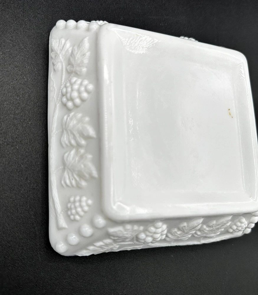 This vintage Westmoreland ashtray is a stunning piece of mid-century charm! The delicate handpainted grape pattern on milk glass gives it a timeless elegance. The glossy finish and unique square shape make it a standout collectible. Perfect for display or use, it adds a touch of retro sophistication to any space. A must-have for lovers of classic glassware!