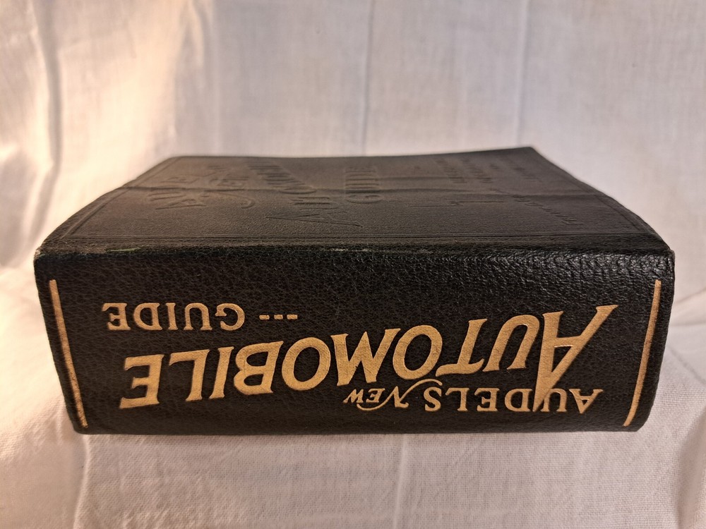 When you purchase this item you are supporting the Friends of the Hamilton Library in New Jersey, a non-profit organization helping to provide materials and programming for adults, teens, and children at our library. Cover has some wear at corners and is creased. Endpapers are tight at front and back hinges. Pages are unmarked, unfolded, tanned with age. Text block edges are slightly faded from age. Binding is tight. SEE PHOTOS. This is a 1949 edition of Audel's New Automobile Guide with a dark brown leather cover. This copy is remarkably well preserved with none of the usual writing, oil stains or torn pages that are usually found in books kept by mechanics. This Guide provides detailed instructions for repairing and adjusting vintage automobiles. Containing hundreds of illustrations and photos to assist in performing the work. Please ask all questions before purchase. bh